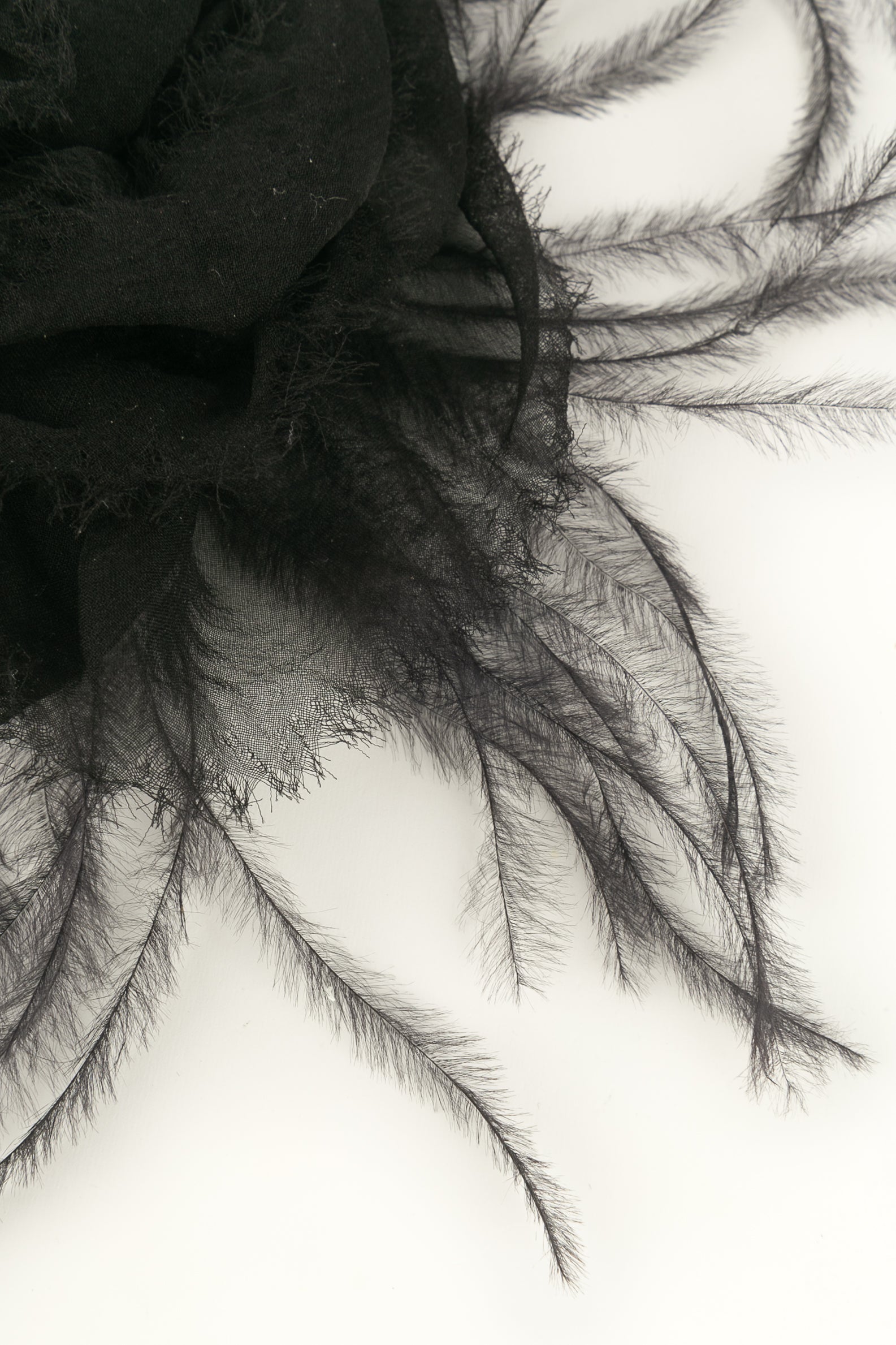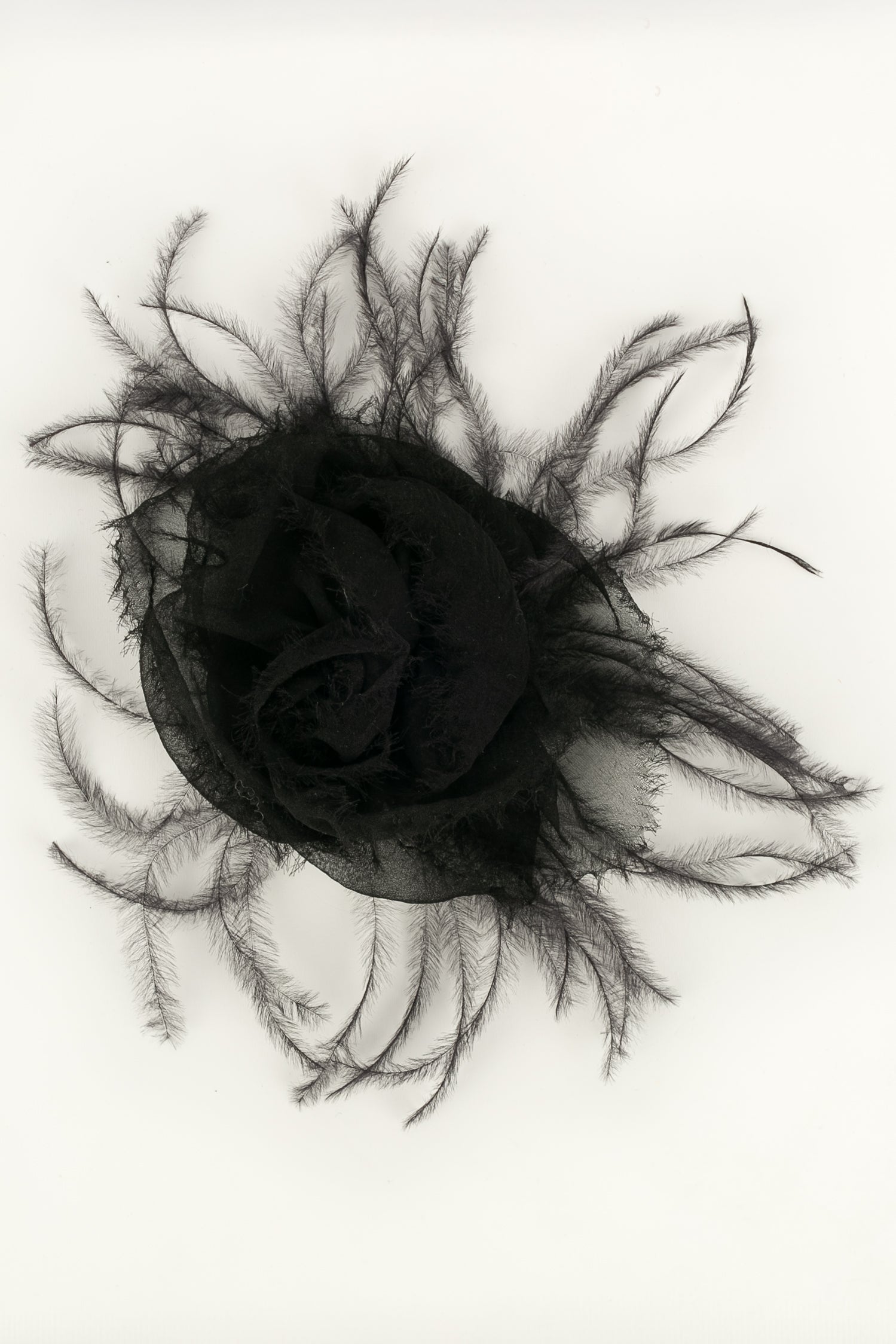 CHANEL -(Made in France) Broche en crêpe de soie noire et plumes.