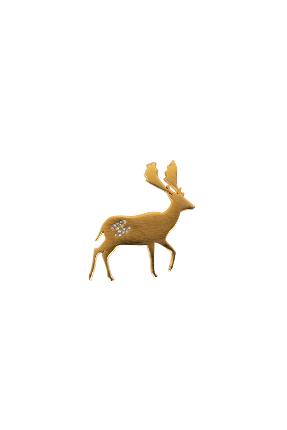 CHANEL - (Made in France) Broche cerf en métal doré et strass de Swarovski. Collection Automne-Hiver 2001.