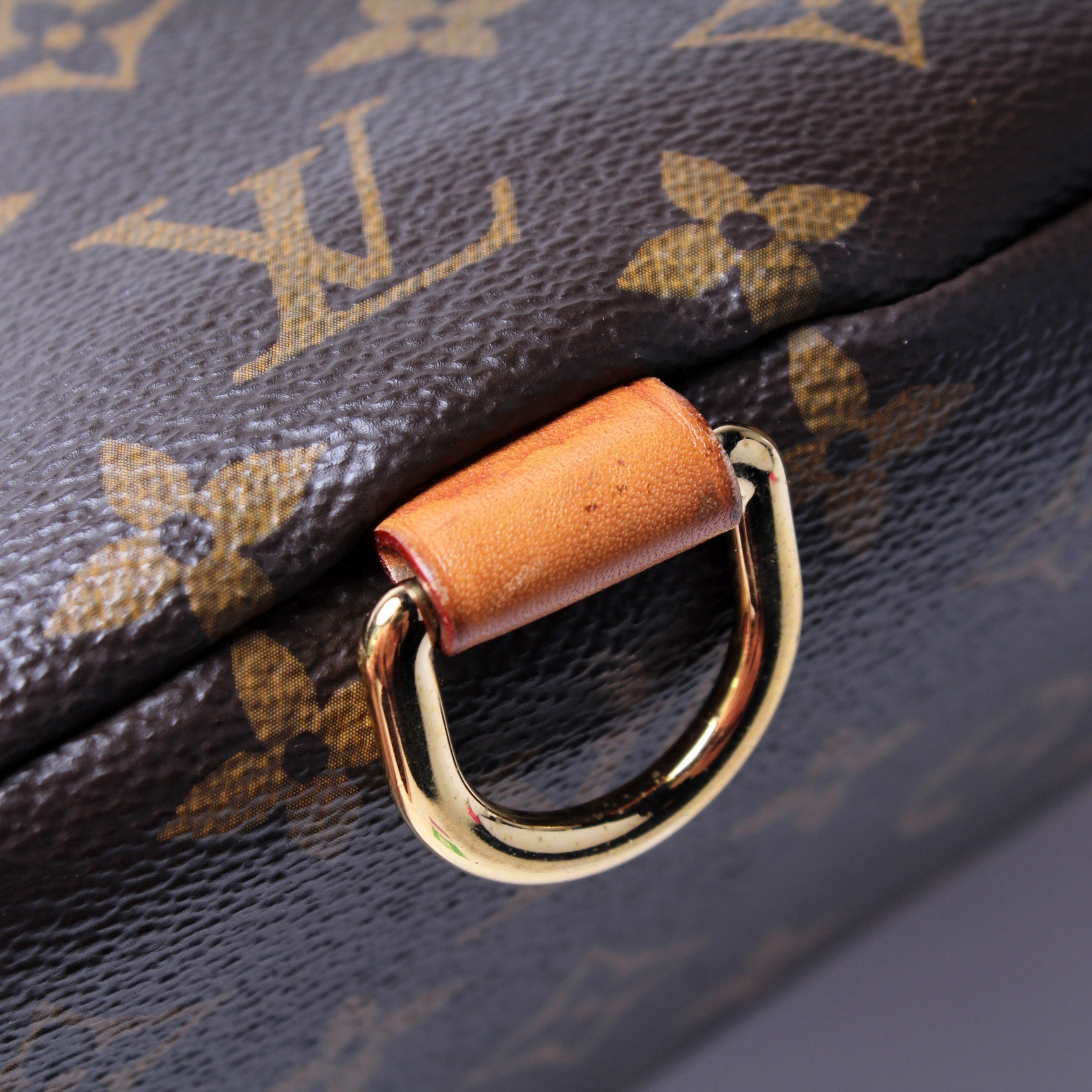 Handle: The leather handle is free of any rips or cracks. It has discoloration throughout as pictured.