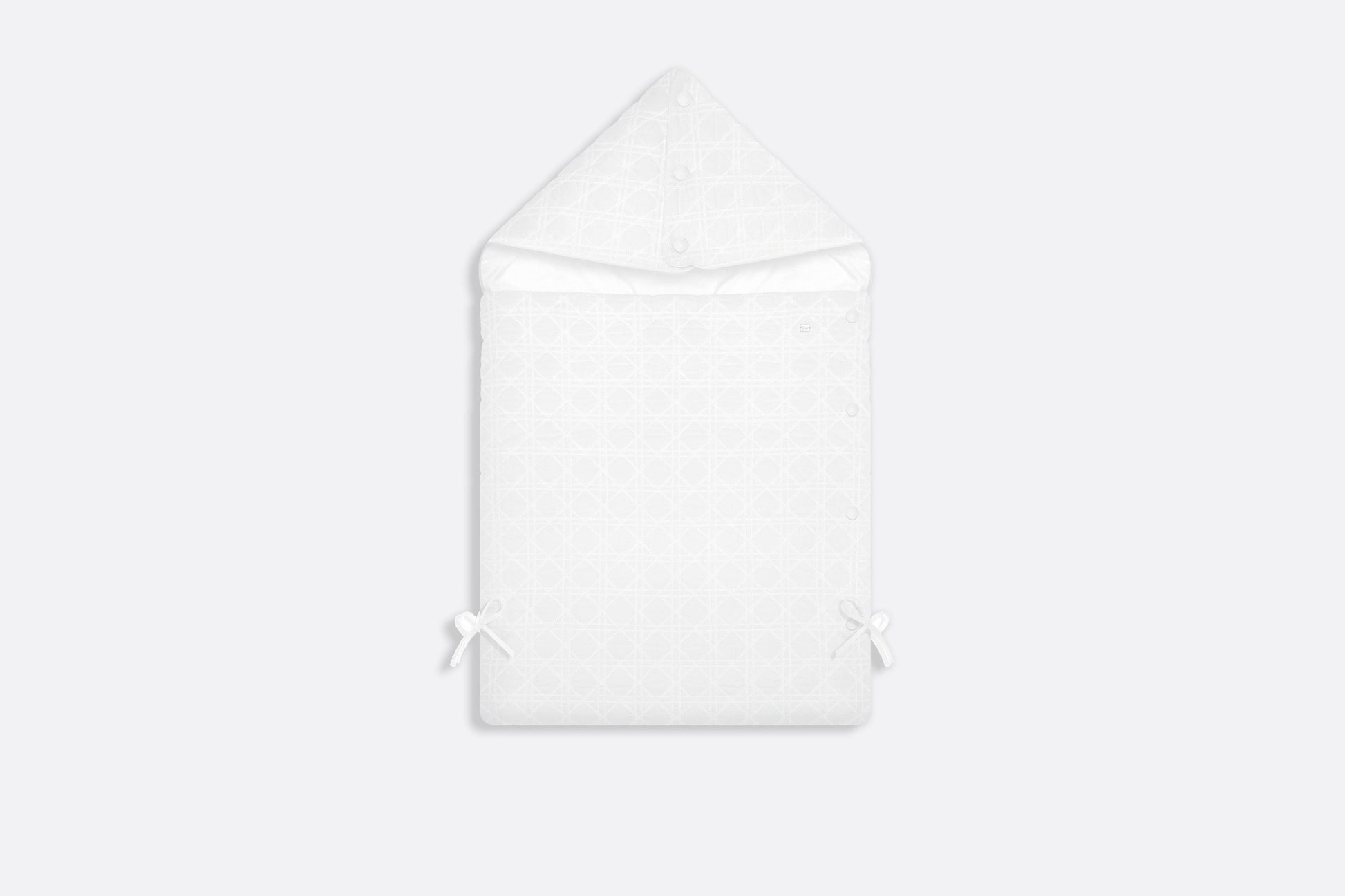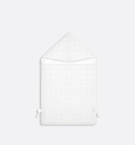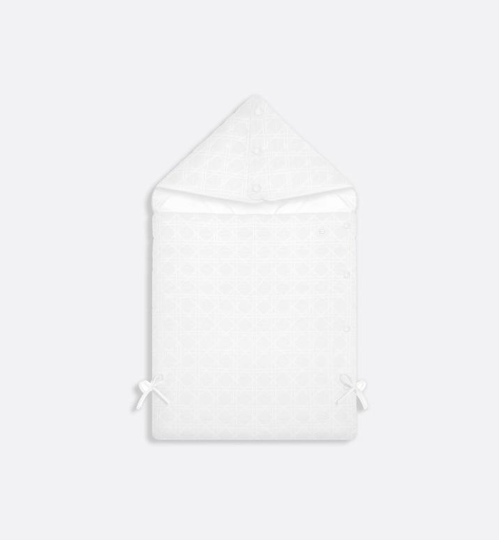 Cannage, one of Dior's most emblematic patterns, appears in the embroidery of this cotton poplin bunting bag. This refined cocoon is lined in soft jersey to fully envelop baby. 89 x 44 cm
