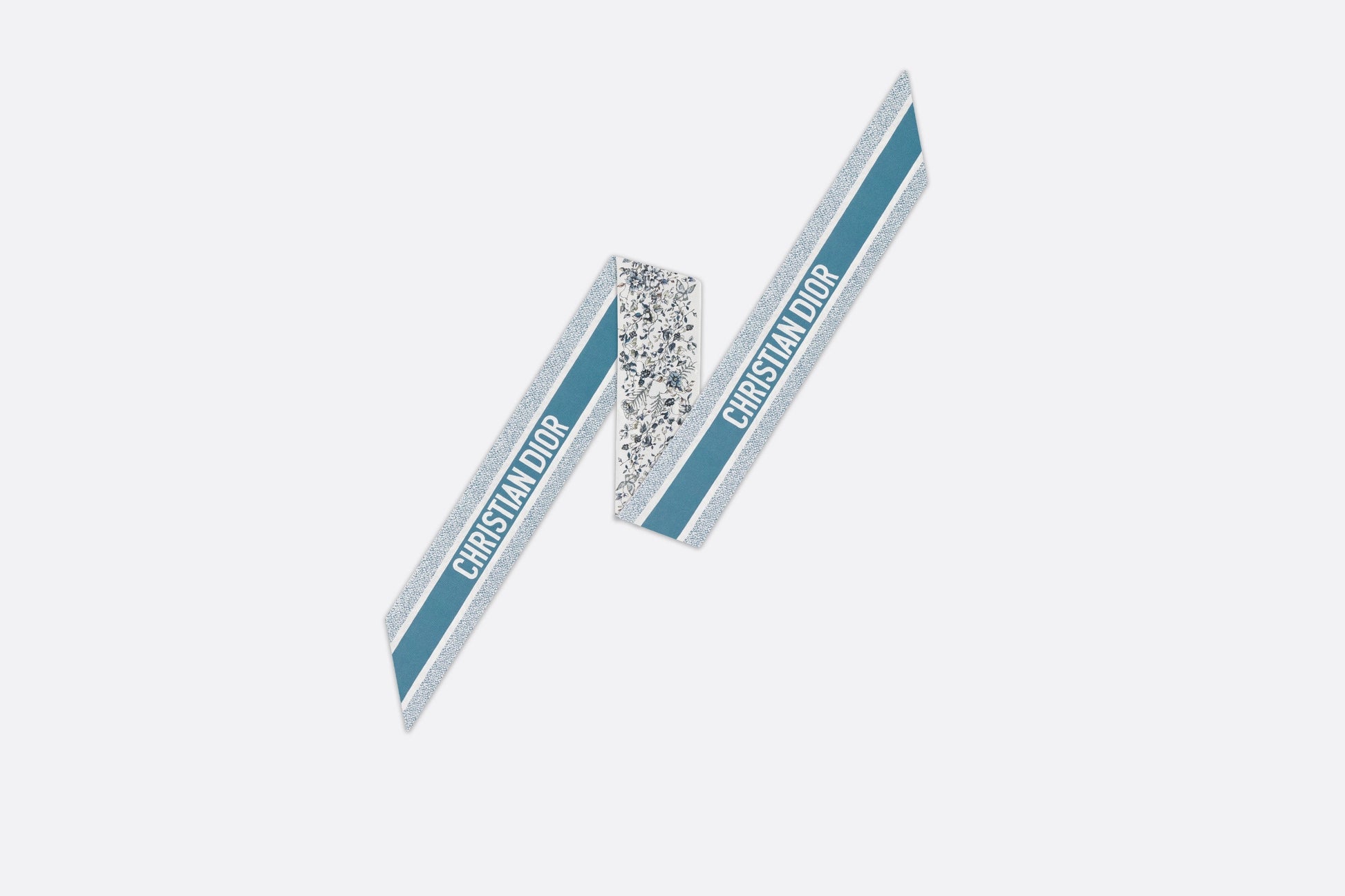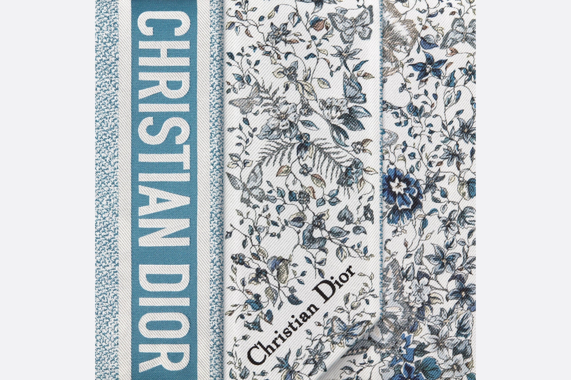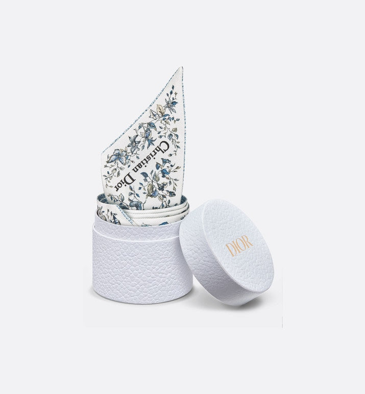 The Mitzah scarf features a white and pastel midnight blue silk twill Butterfly Around The World motif by Pietro Ruffo, showcasing the collection’s signature butterfly theme. The timeless, elongated style with pointed ends is further embellished with a contrasting Christian Dior signature jacquard band on the back. The Mitzah scarf will lend the finishing touch to any modern look and may be tied around the neck, at the wrist or on a bag, and can be coordinated with other Butterfly Around The World creations.