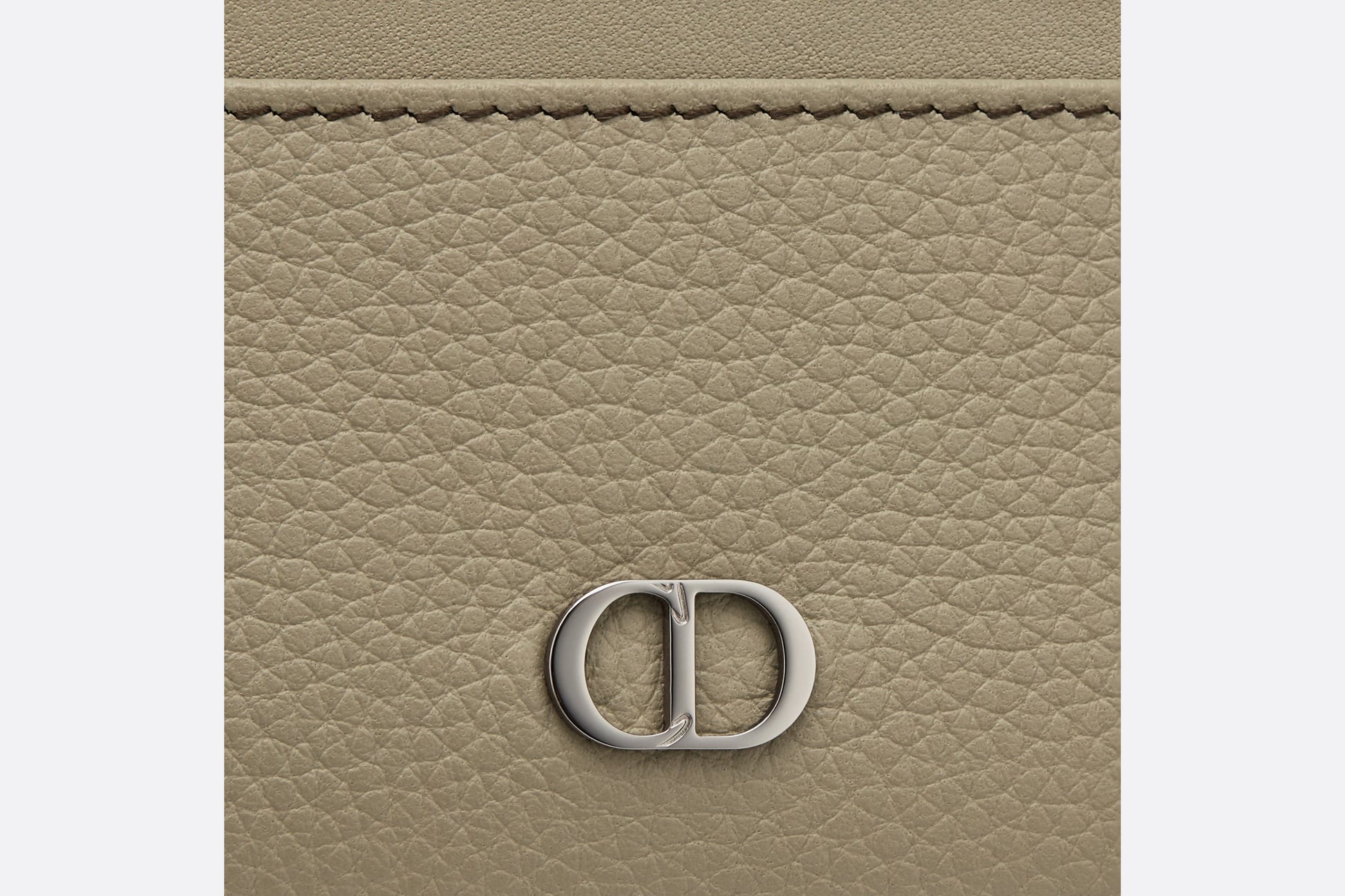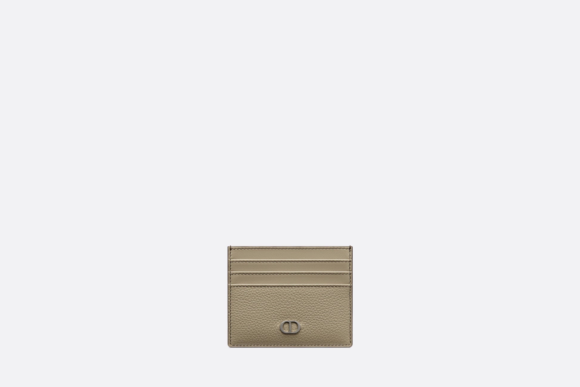 The card holder is a practical piece with a refined charm. Crafted in beige grained calfskin, it boasts a ruthenium-finish brass CD Icon signature on the front and features three slots on each side to carry personal effects. The elegant card holder will easily slip into any pocket.