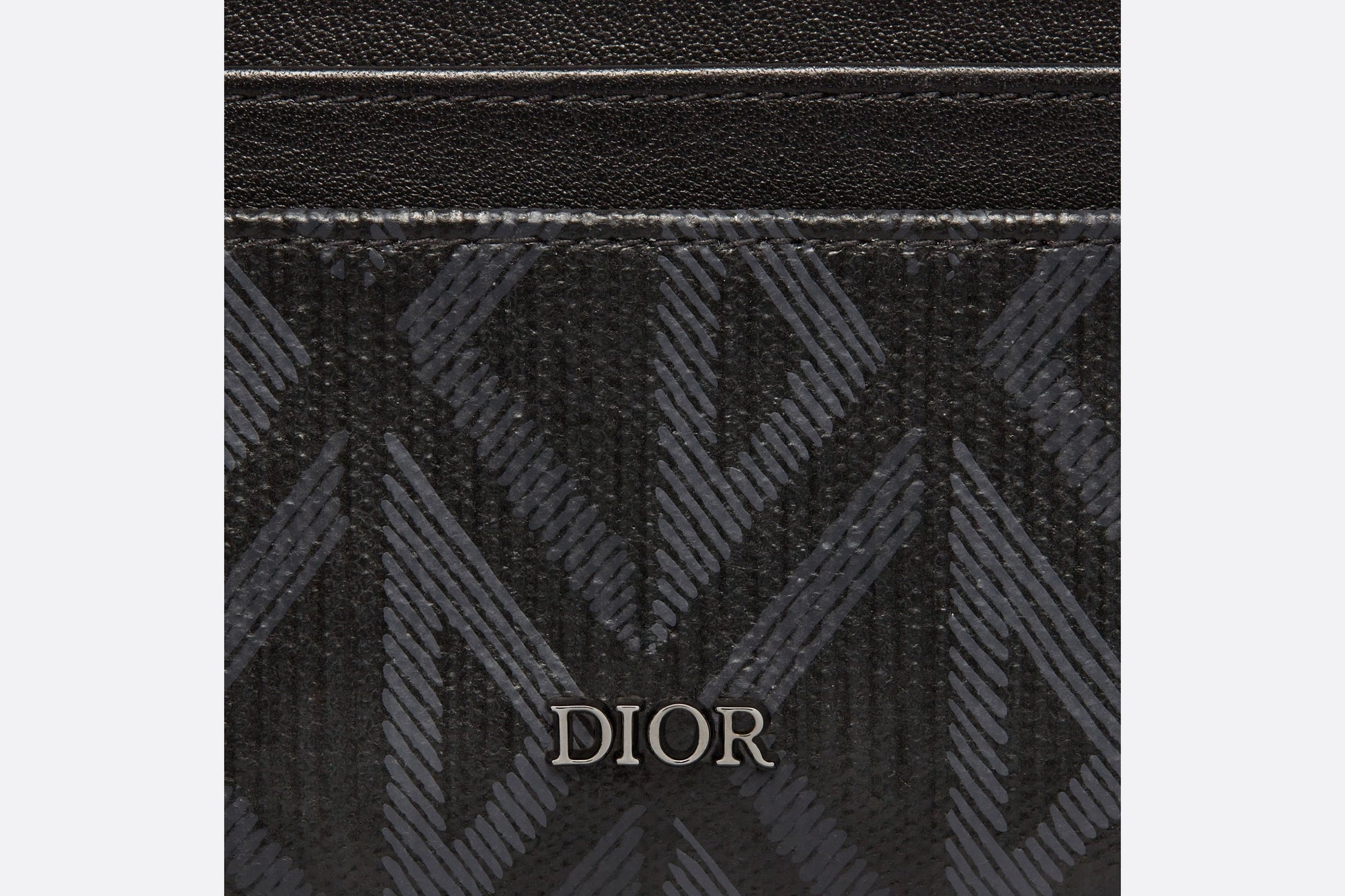 The card holder is a practical piece with refined charm. Crafted in black CD Diamond canvas inspired by the House's archives, it is embellished with tonal calfskin details. The design features three slots on each side to carry personal effects. The elegant card holder will easily slip into any pocket.