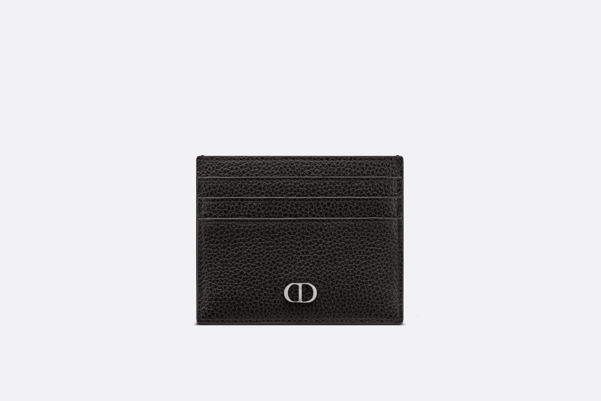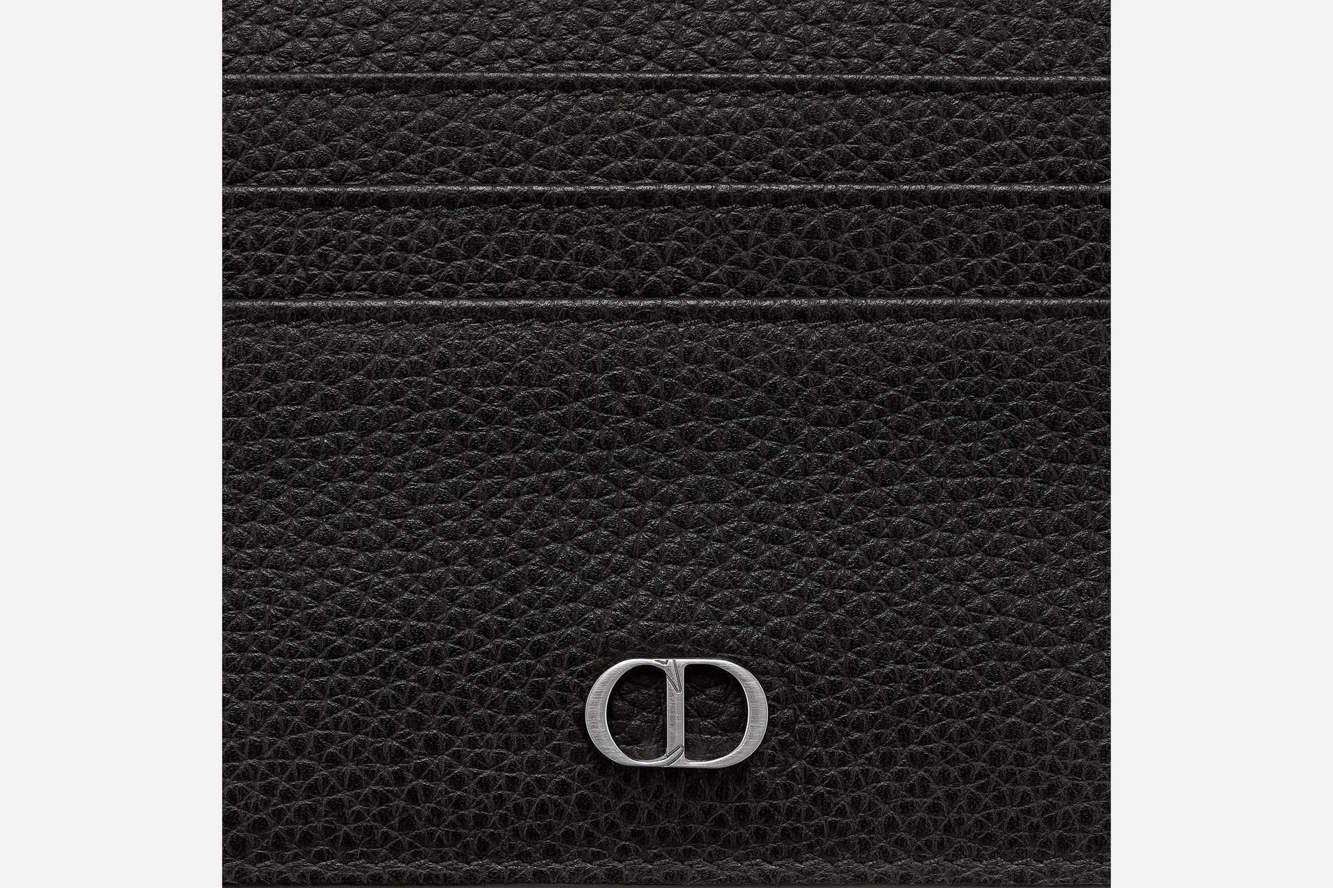 The card holder is a practical piece with a refined charm. Crafted in black grained calfskin, it presents the ruthenium-finish brass 'CD Icon' signature on the front and features three slots one each side to carry personal effects. The elegant card holder will easily slip into any pocket.