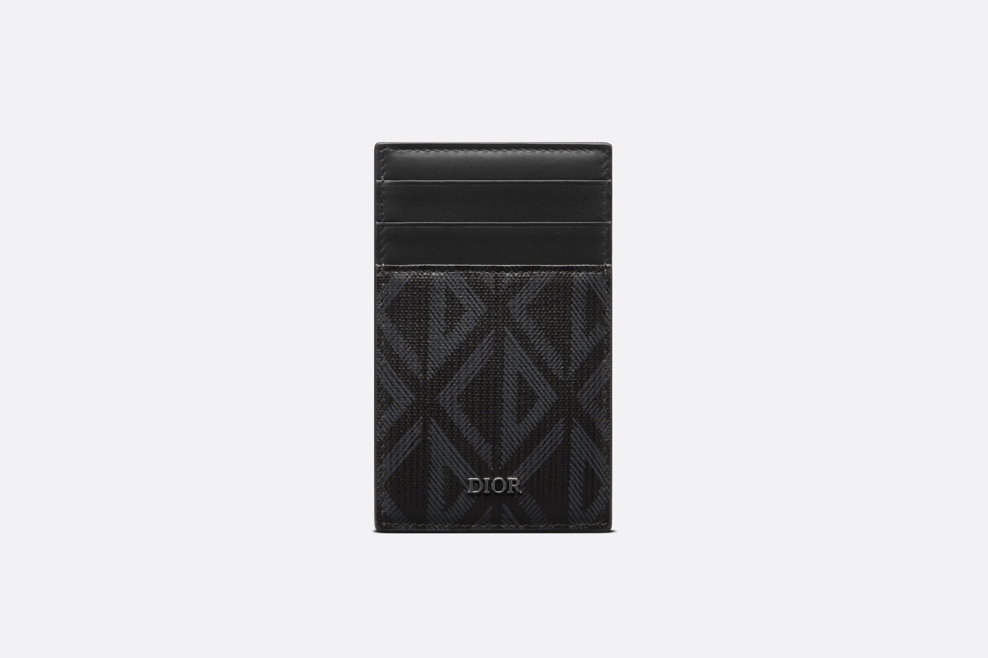 The bi-fold card holder is a functional accessory with refined charm. Crafted in black CD Diamond canvas, it features three slots and a Dior signature on one side, while a bill clip enhances the other. The elegant card holder will slip easily into any pocket.
