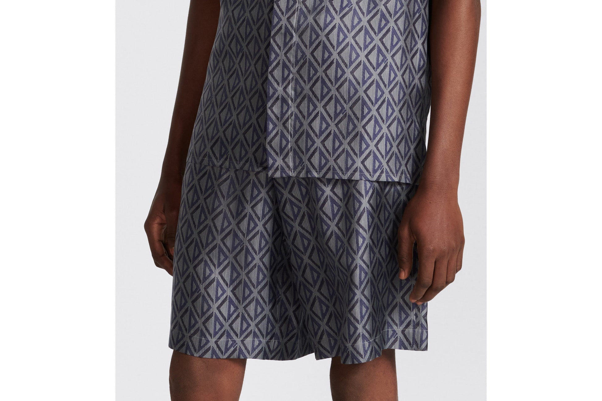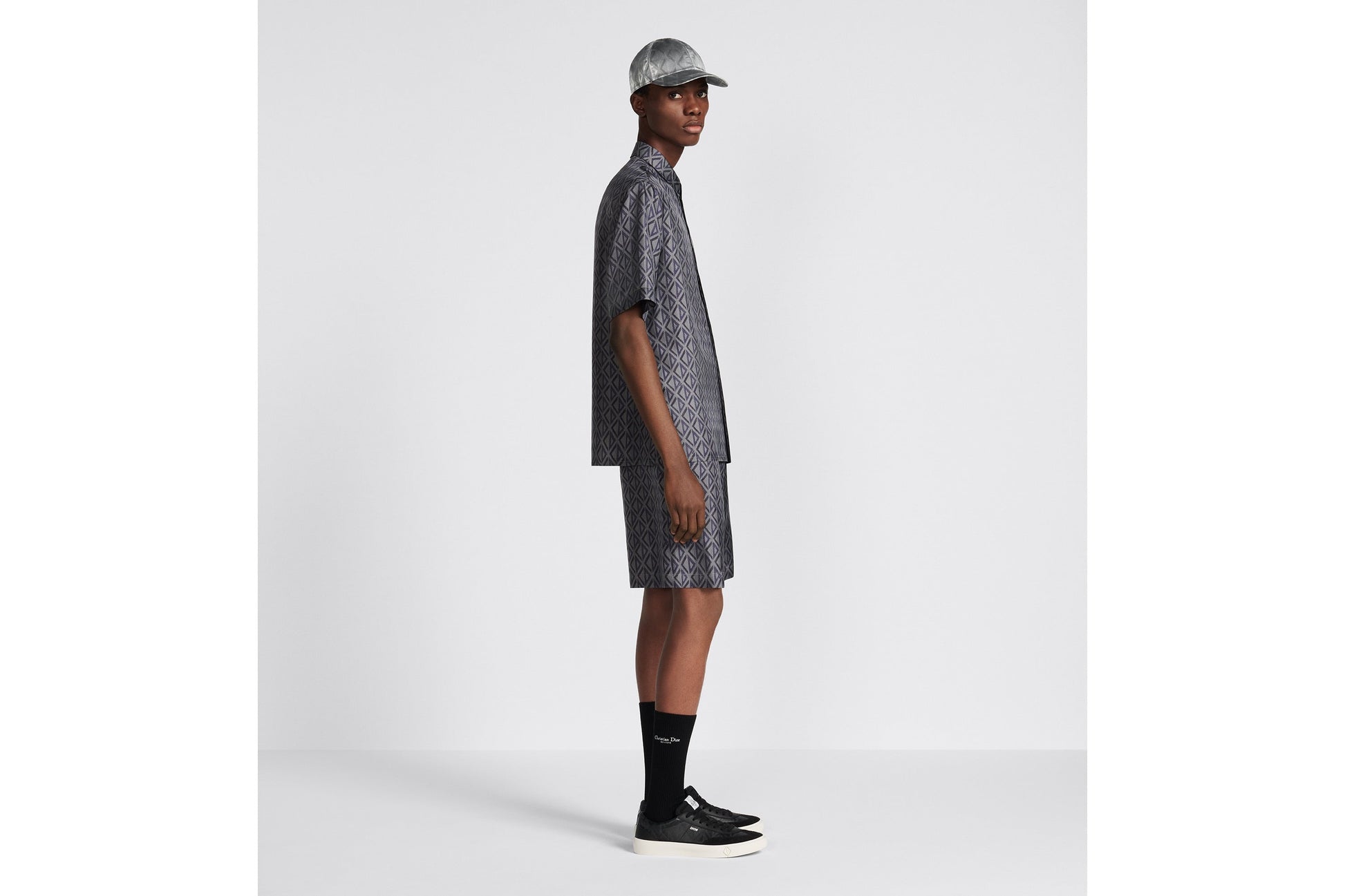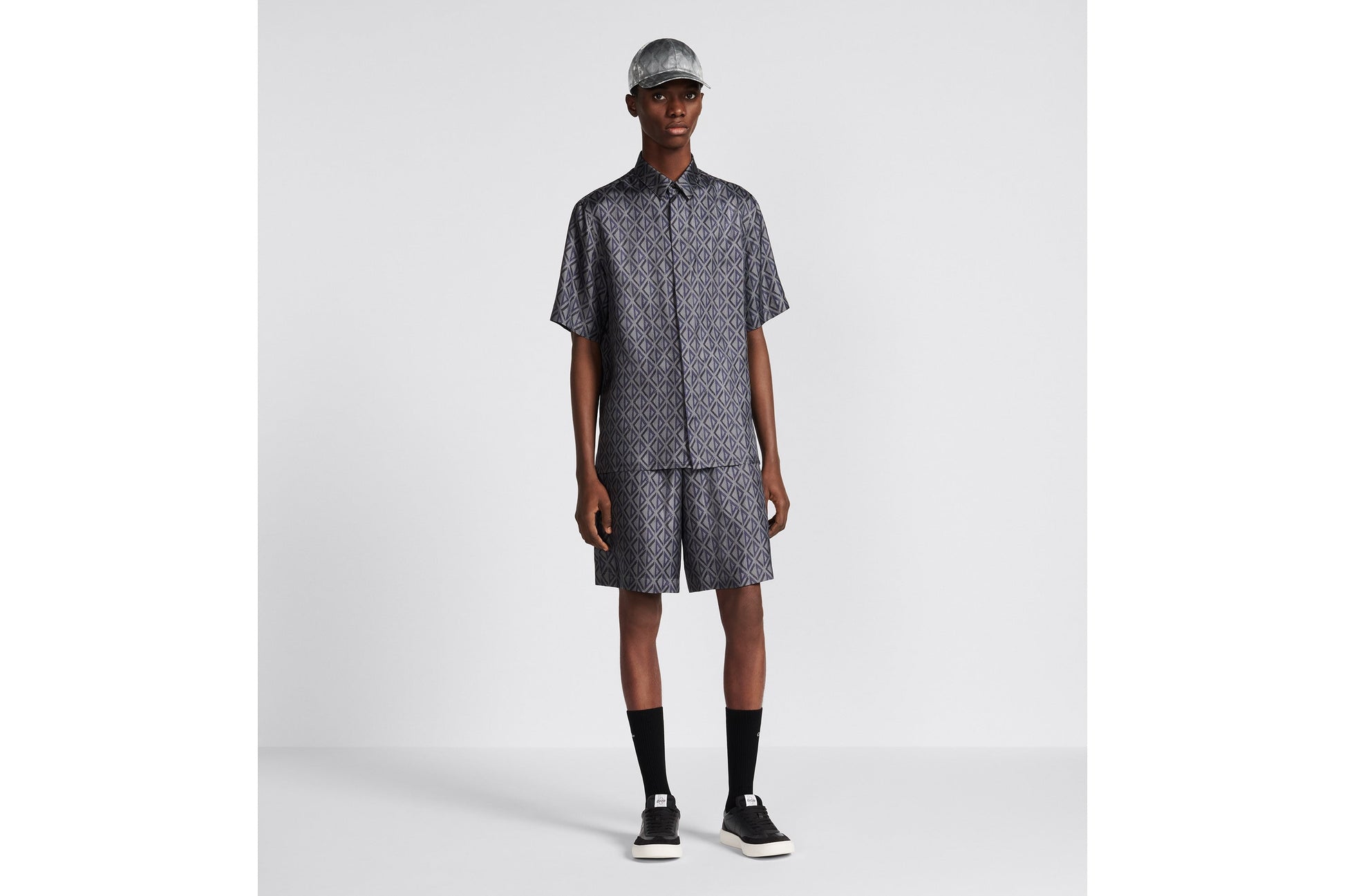 The Bermuda shorts reframe House elements with a modern lens. They are crafted in deep gray silk twill with the all-over CD Diamond motif, a graphic design imagined by Marc Bohan in 1974 that revisits the CD initials in the form of a diamond with architectural lines. Featuring side welt pockets and a patch pocket in the back, the laid-back, mid-rise Bermuda shorts can be paired with the matching shirt.