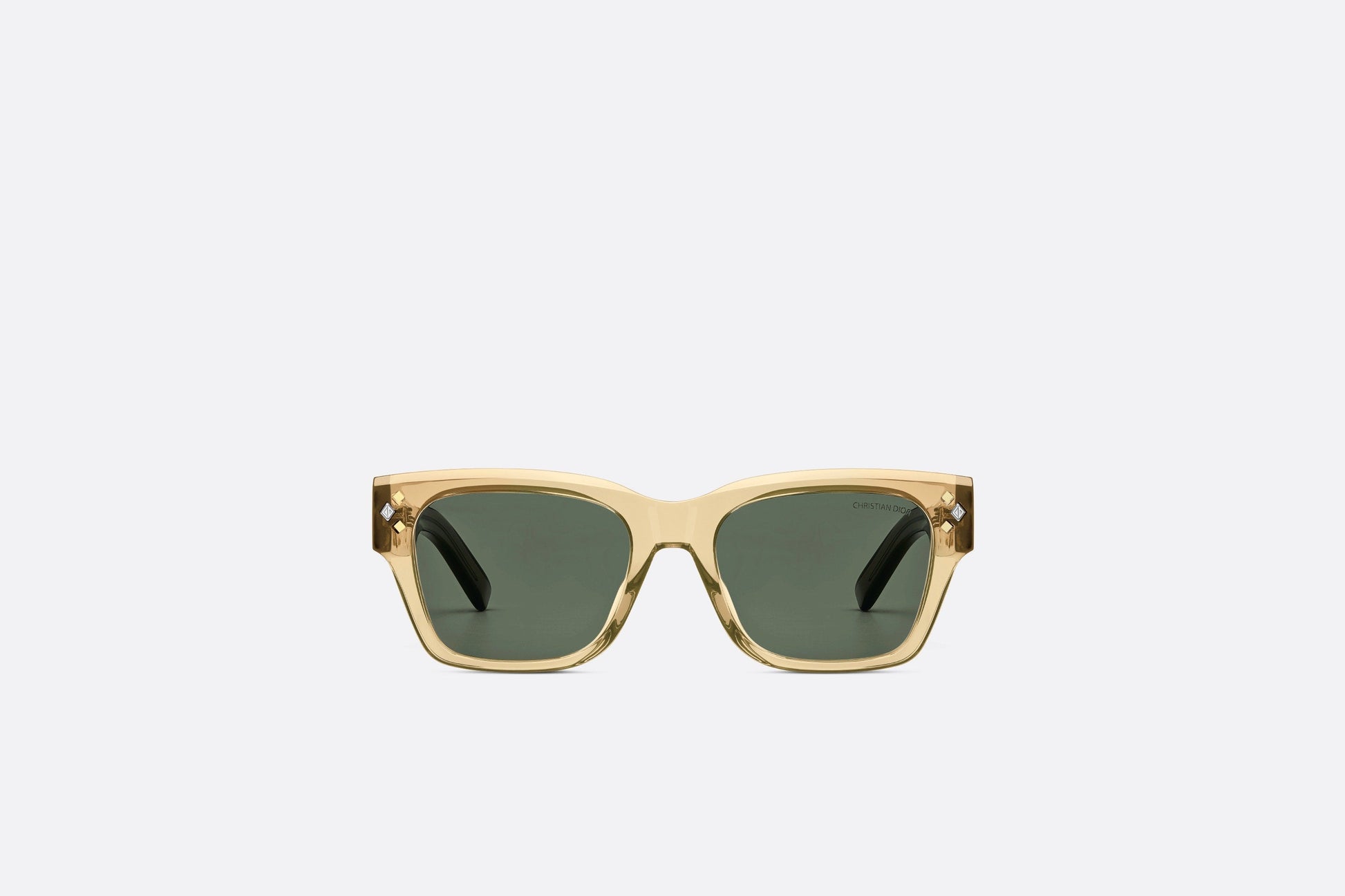 The CD Diamond S2I sunglasses, featuring green lenses, enhance the line with a rectangular form and sophisticated details. The translucent yellow acetate frame reveals temples engraved with the CD Diamond motif and embellished with a play of transparency and diamond-shaped details. The CD Diamond interior hinge in gold-finish metal completes the tailoring-inspired sunglasses.