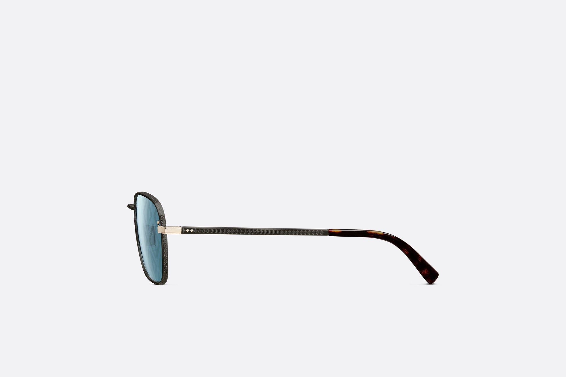 The CD Diamond S4U sunglasses elevate the line with a new metallic concept. The gunmetal and gold-finish metal square frame stands out with delicate engraving around the blue mirrored lenses and on the temples, revealing a CD Diamond motif. Diamond details and a Christian Dior signature on the left lens complete the style's tailoring spirit.