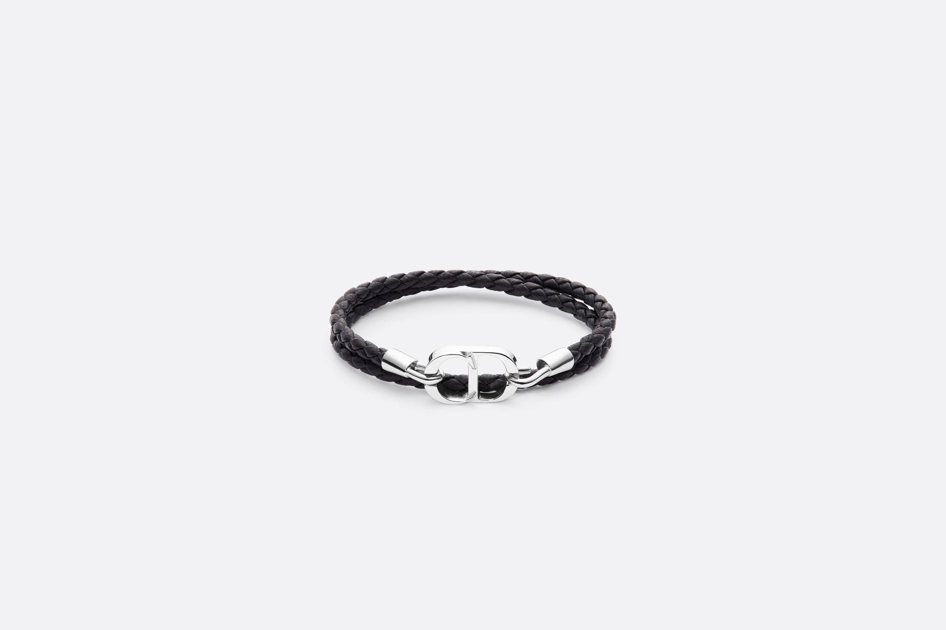CD Icon Braided Leather Bracelet • Black Calfskin and Silver-Finish Brass