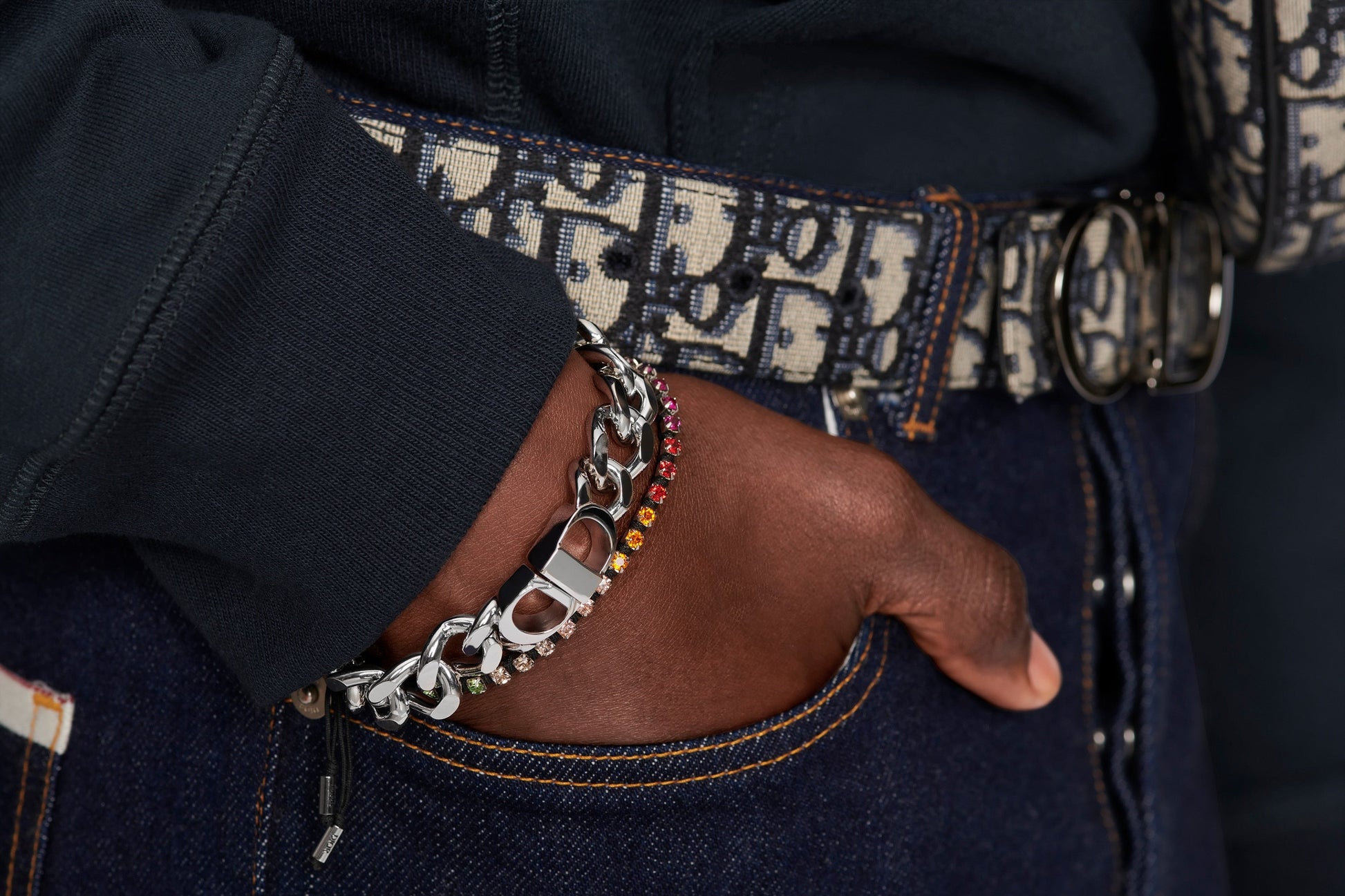 The CD Icon link bracelet is a timeless design imbued with style. Thick, shiny silver-finish brass links create a modern silhouette, while the signature CD Icon magnetic clasp adds an iconic touch. The bracelet can be coordinated with the matching necklace and ring.