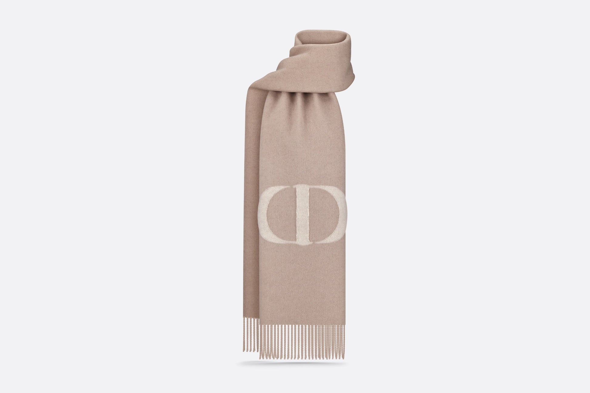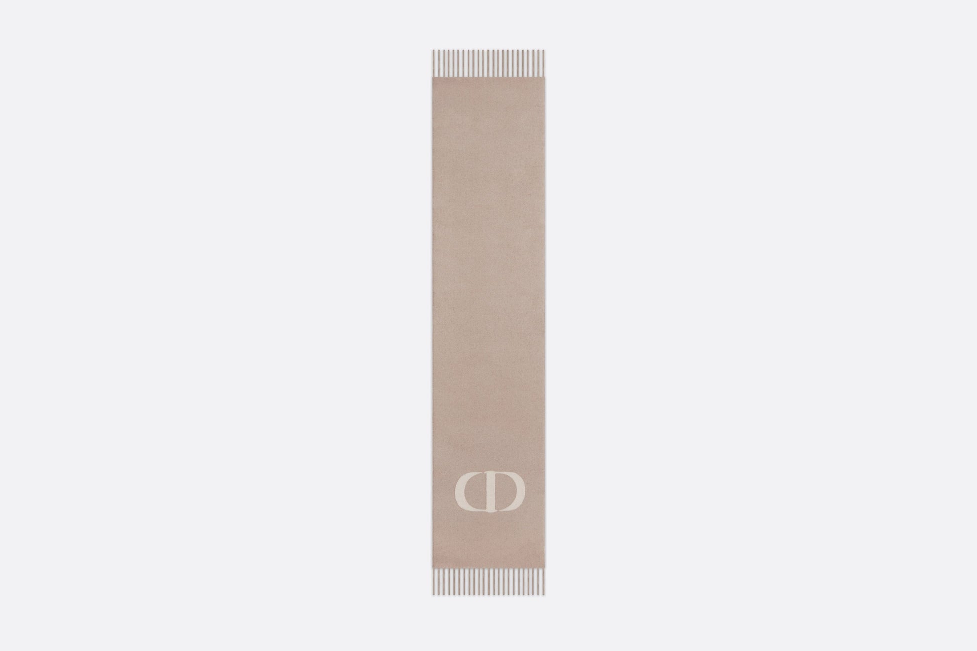 The CD Signature scarf offers a new take on Mr. Dior's initials in a modern yet timeless spirit. Crafted in a beige cashmere and wool blend, it is accented with fringed edging. Long and enveloping, the scarf can be worn around the neck or draped over the shoulders.