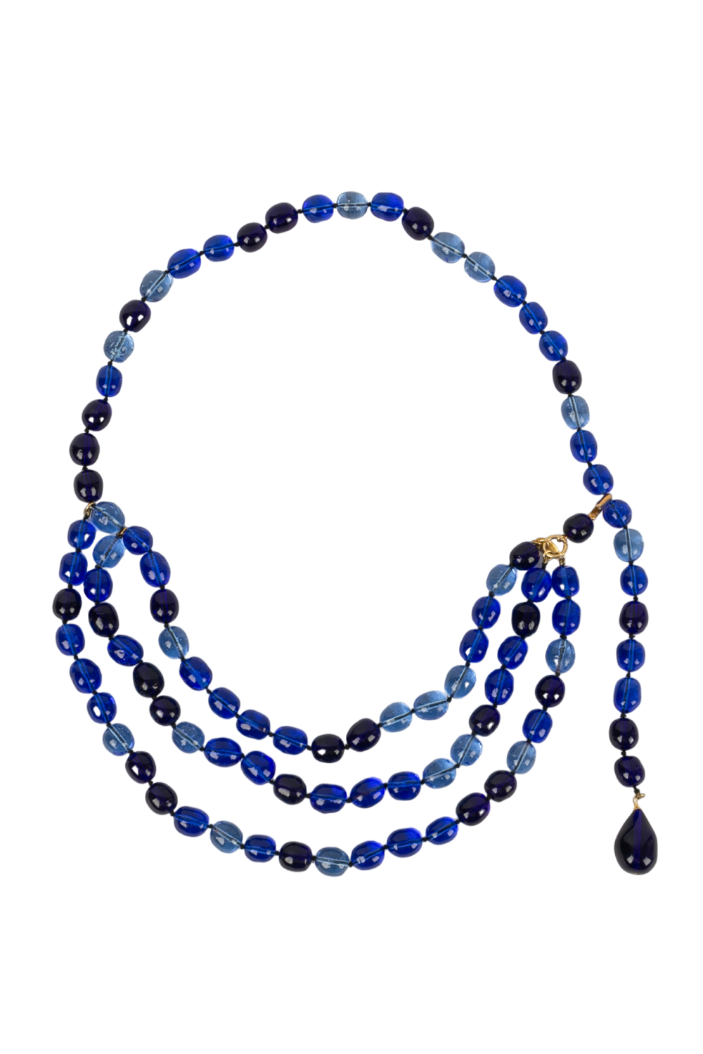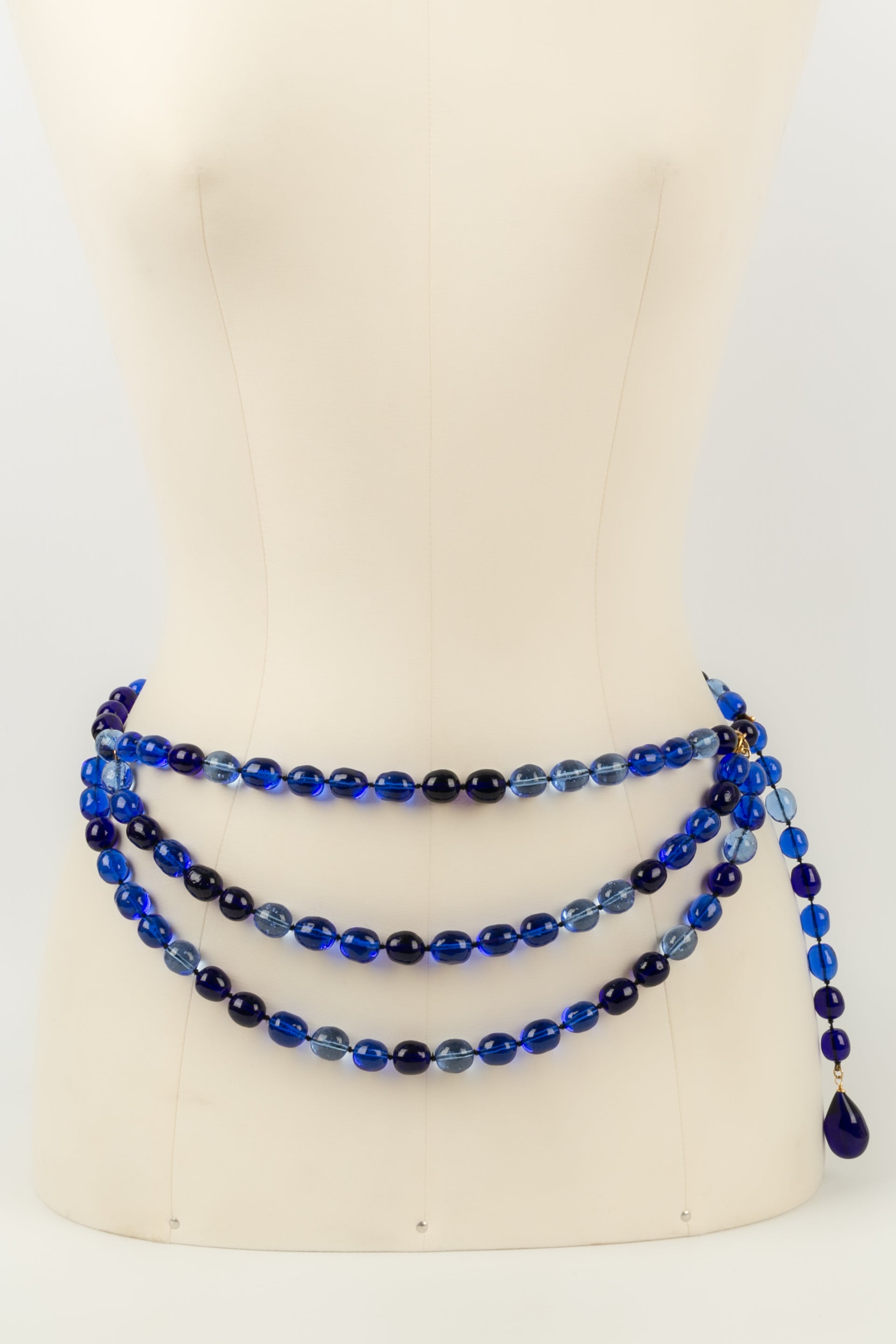 CHANEL -(Made in France) Ceinture de perles de verre bleues. Collection Automne/Hiver 1992.