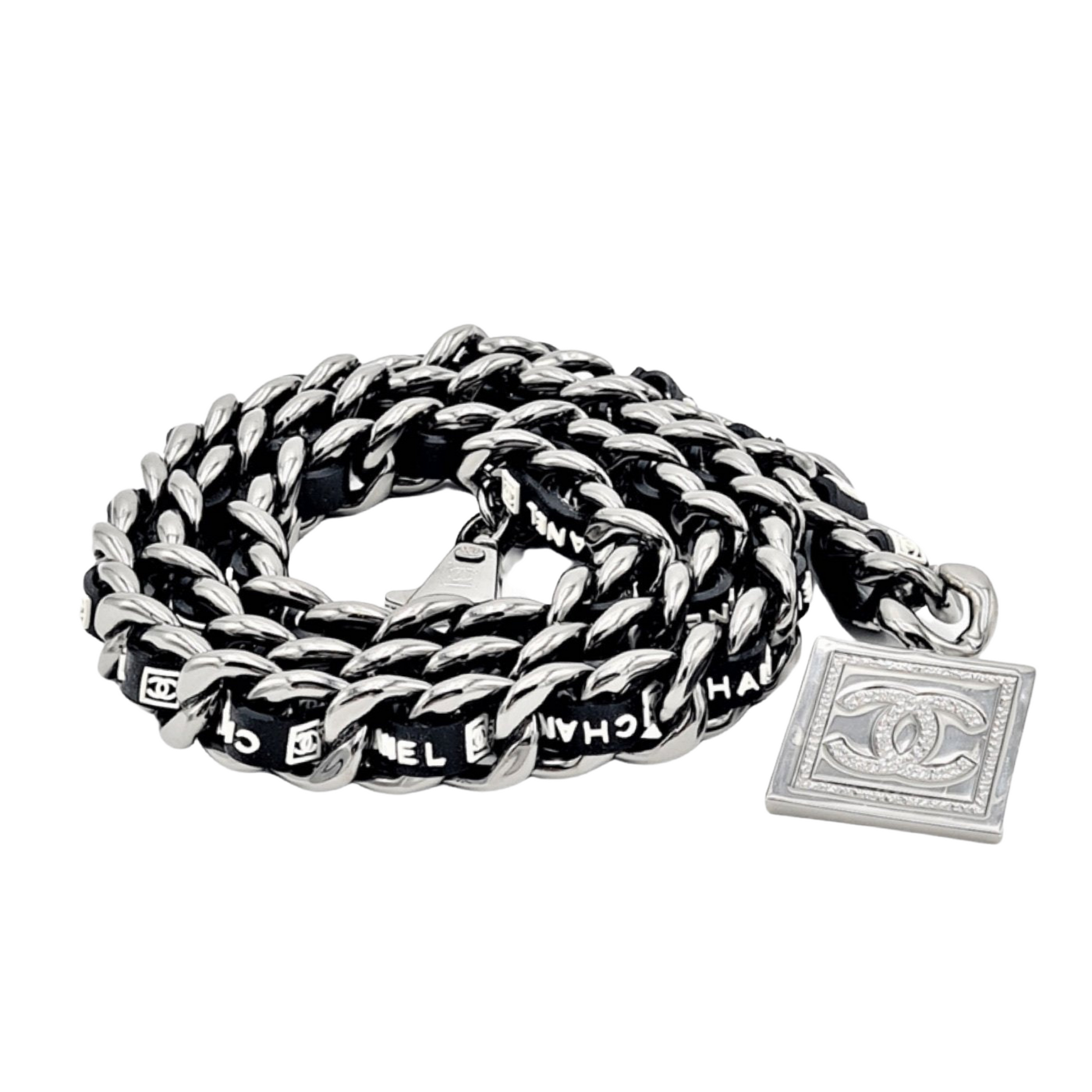 • DESCRIPTION: Chanel "Ecriture" belt by Karl Lagerfeld, with CC logo badge