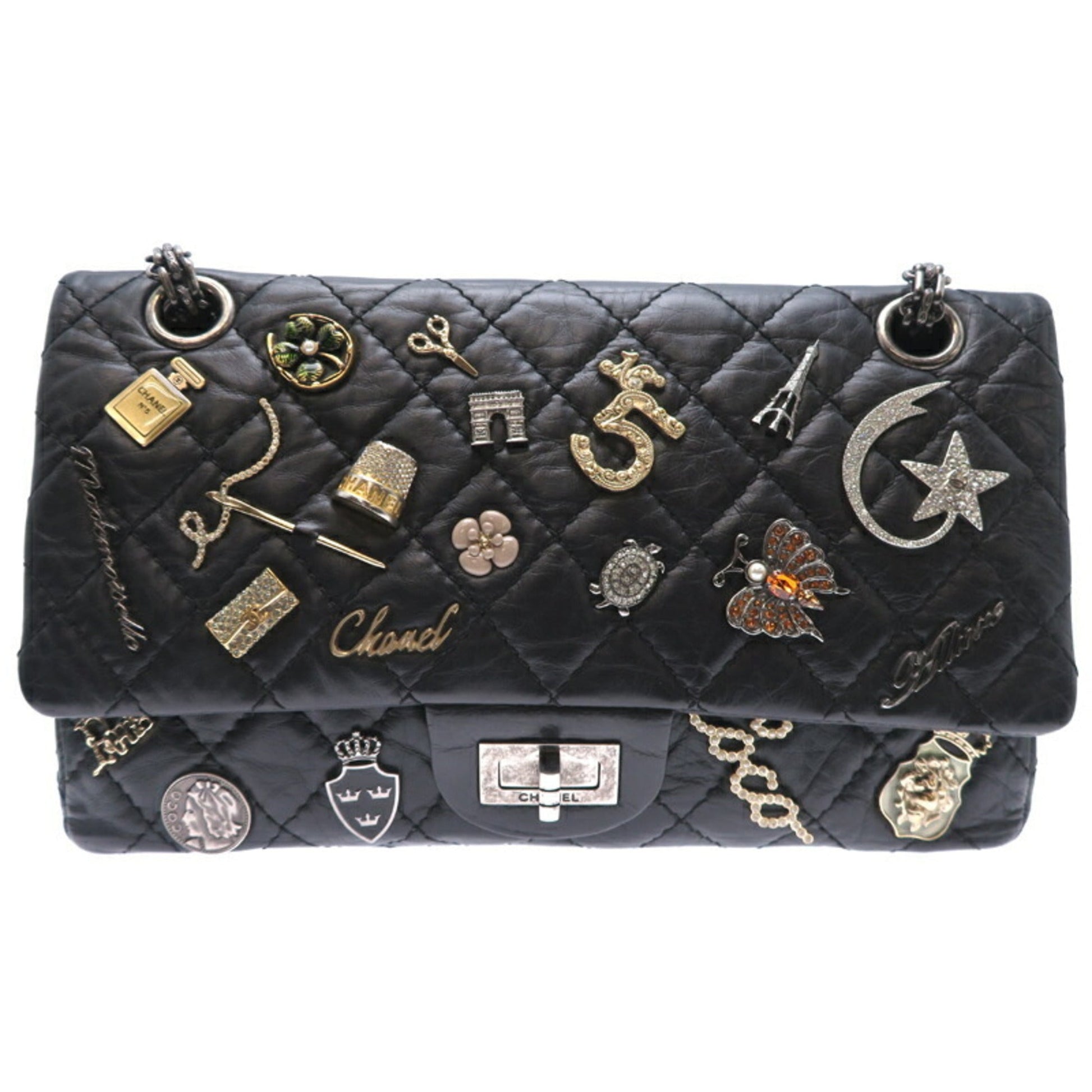 Chanel 2.55 Black Leather Shoulder Bag ()