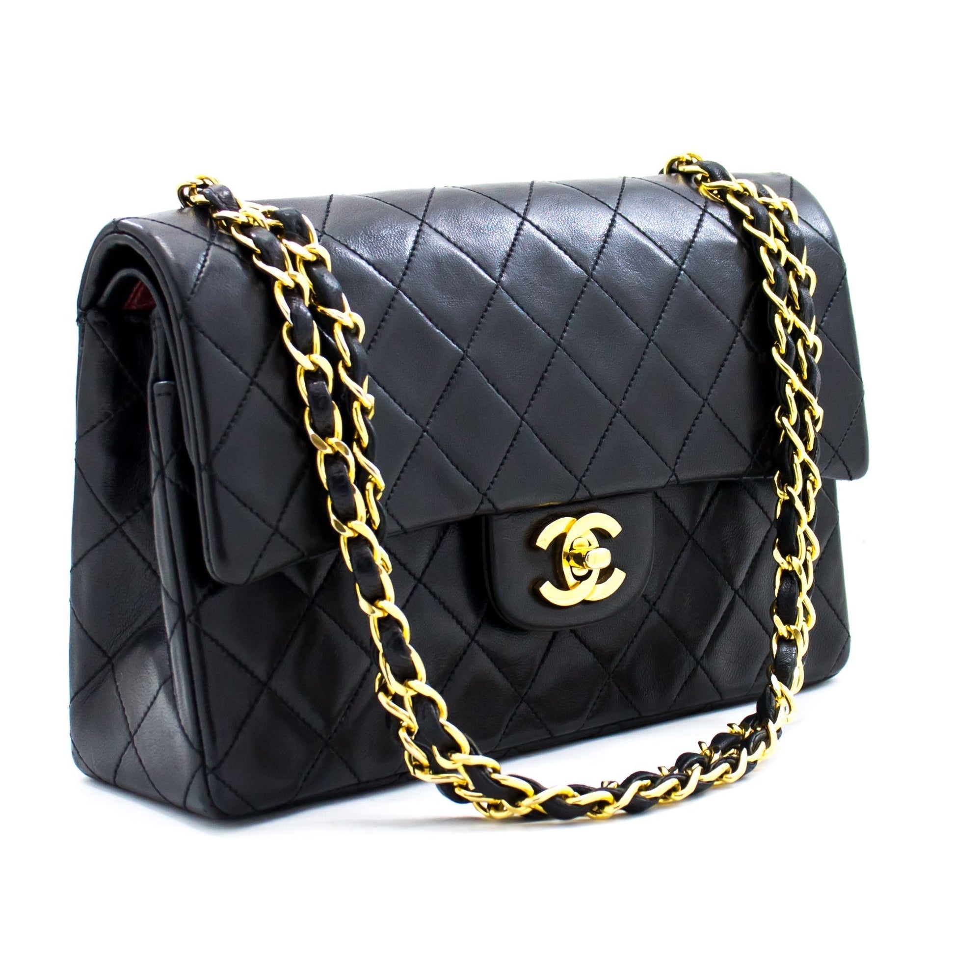 An CHANEL 2.55 Classic Double Flap Small Chain Shoulder Bag Black made of black Lambskin h21 This item is Vintage / Classic. The year of manufacture would be 1986-1988.