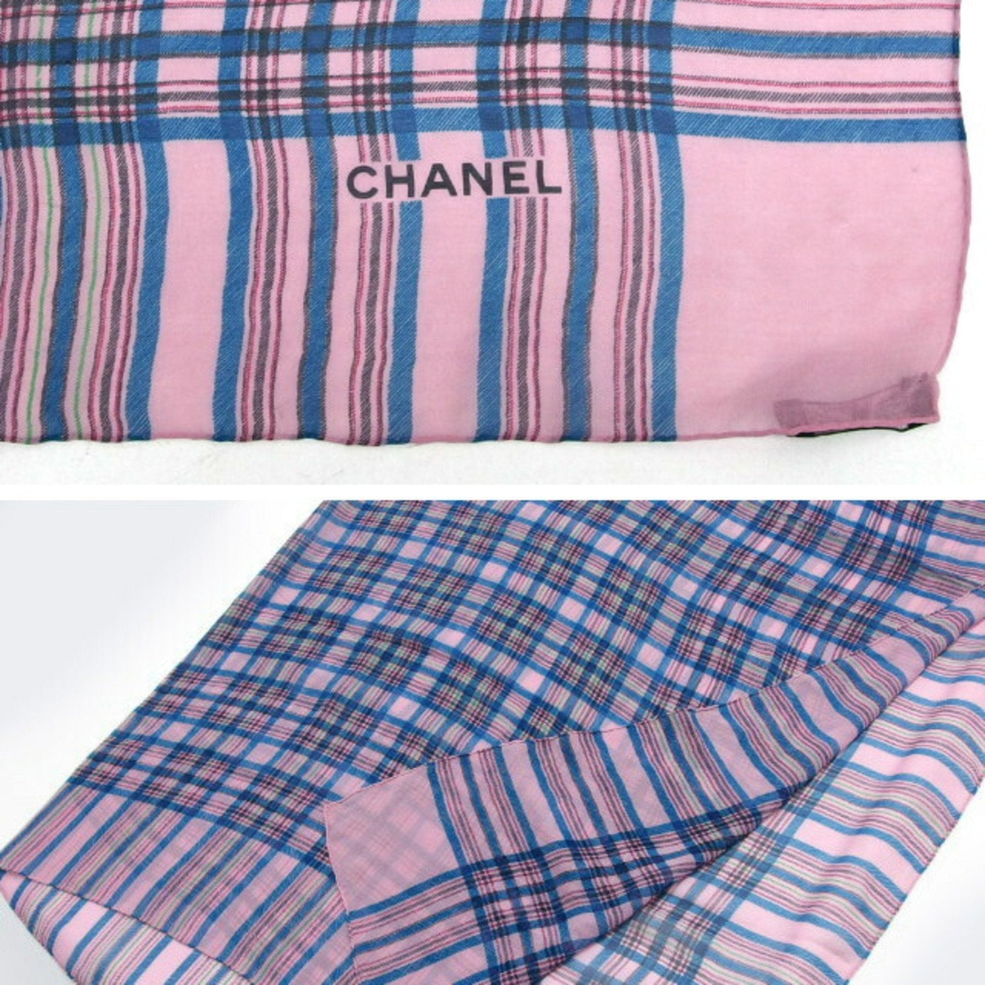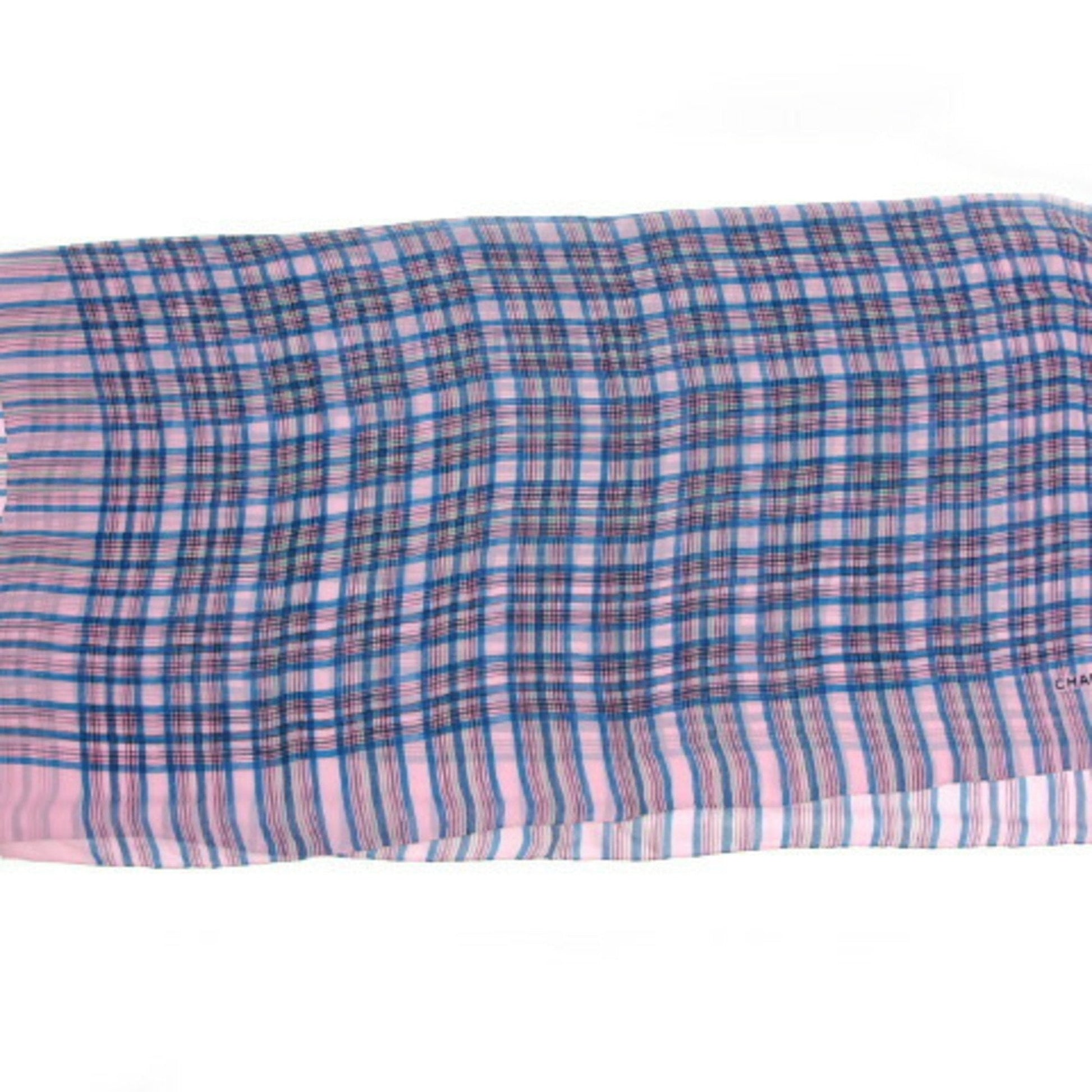 This Chanel chiffon stole is a beautiful accessory in shades of blue, multi-color, and pink. While it shows a few traces of usage and some minor scratches, it remains a stylish and elegant piece to add a touch of color and sophistication to your outfits.