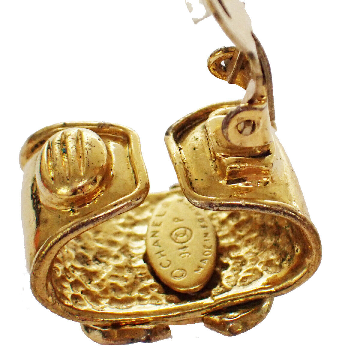CHANEL earrings, designed in France, boast elegant gold-tone styling. Featuring a practical clip-on closure, these earrings are crafted in gold plating, adding a luxurious touch to any ensemble. Aimed specifically at women, these earrings embody the timeless elegance characteristic of the CHANEL brand.