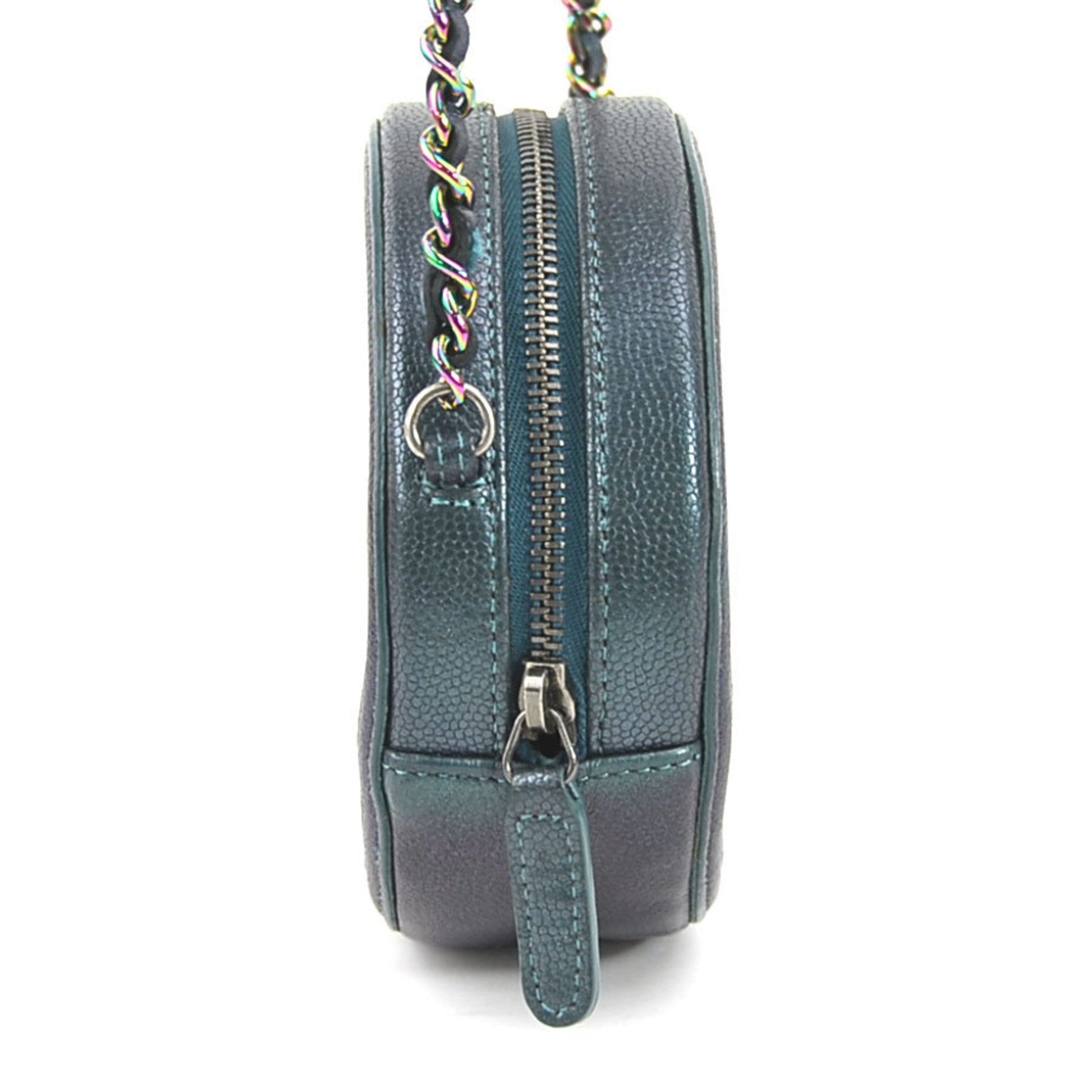 Brand: Chanel, Color: Aurora (spangles), Metallic dark green, Material: Caviar leather, Metal, Dimensions: 12cm x 12cm x 4.5cm / 4.72'' x 4.72'' x 1.77'', Condition: Rank AB. Rank AB Used - Traces of usage, scratches / dirt can be seen but generally in good condition. Before purchasing, please refer to the images for the exact condition of the item. Before purchasing, please refer to the images of the accessories included with the item. Damage Ranking: Slight