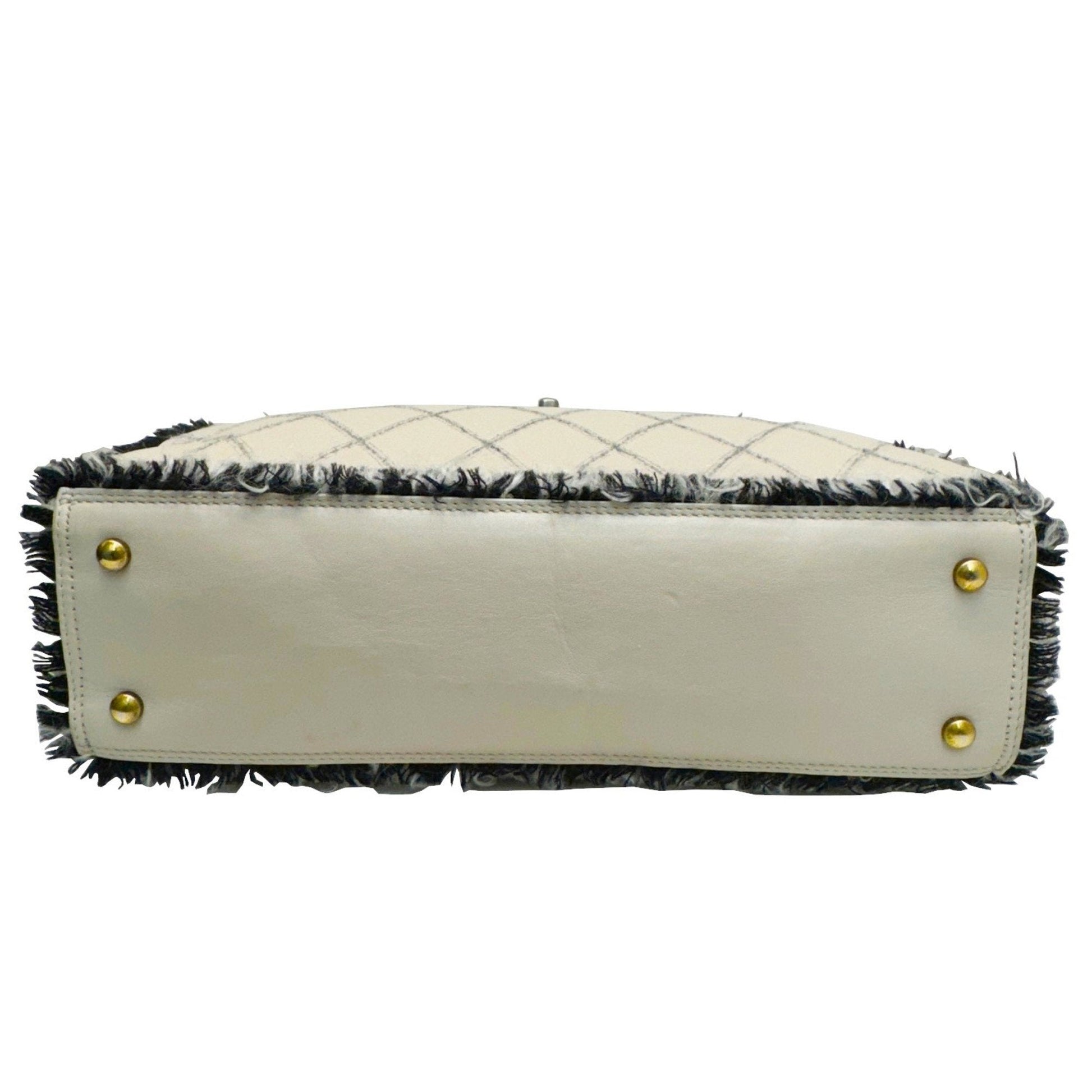 Chanel Beige Black Tweed Leather Tote Bag ()