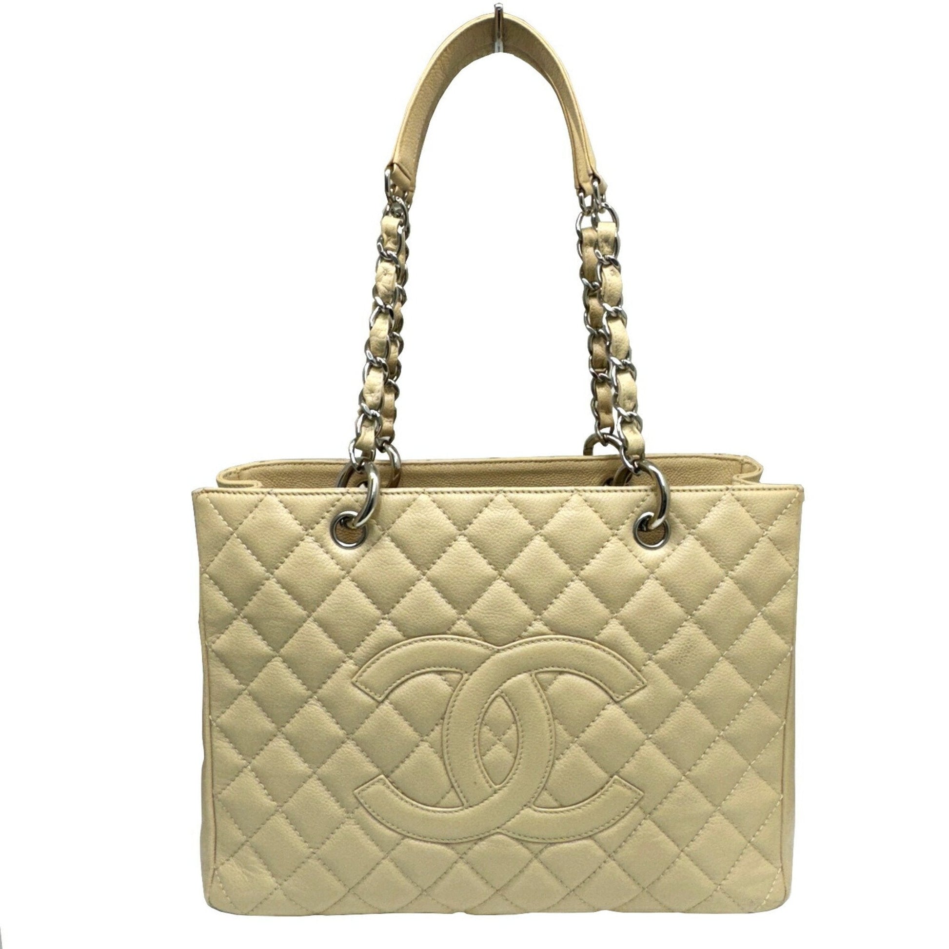 Brand: Chanel, Color: Beige, Material: Grained Calfskin, Dimensions: 24.5cm x 33cm x 13.5cm / 9.64'' x 12.99'' x 5.31'', Condition: Rank AB. Rank AB Used - Traces of usage, scratches / dirt can be seen but generally in good condition. Before purchasing, please refer to the images for the exact condition of the item. Before purchasing, please refer to the images of the accessories included with the item. Damage Ranking: Slight