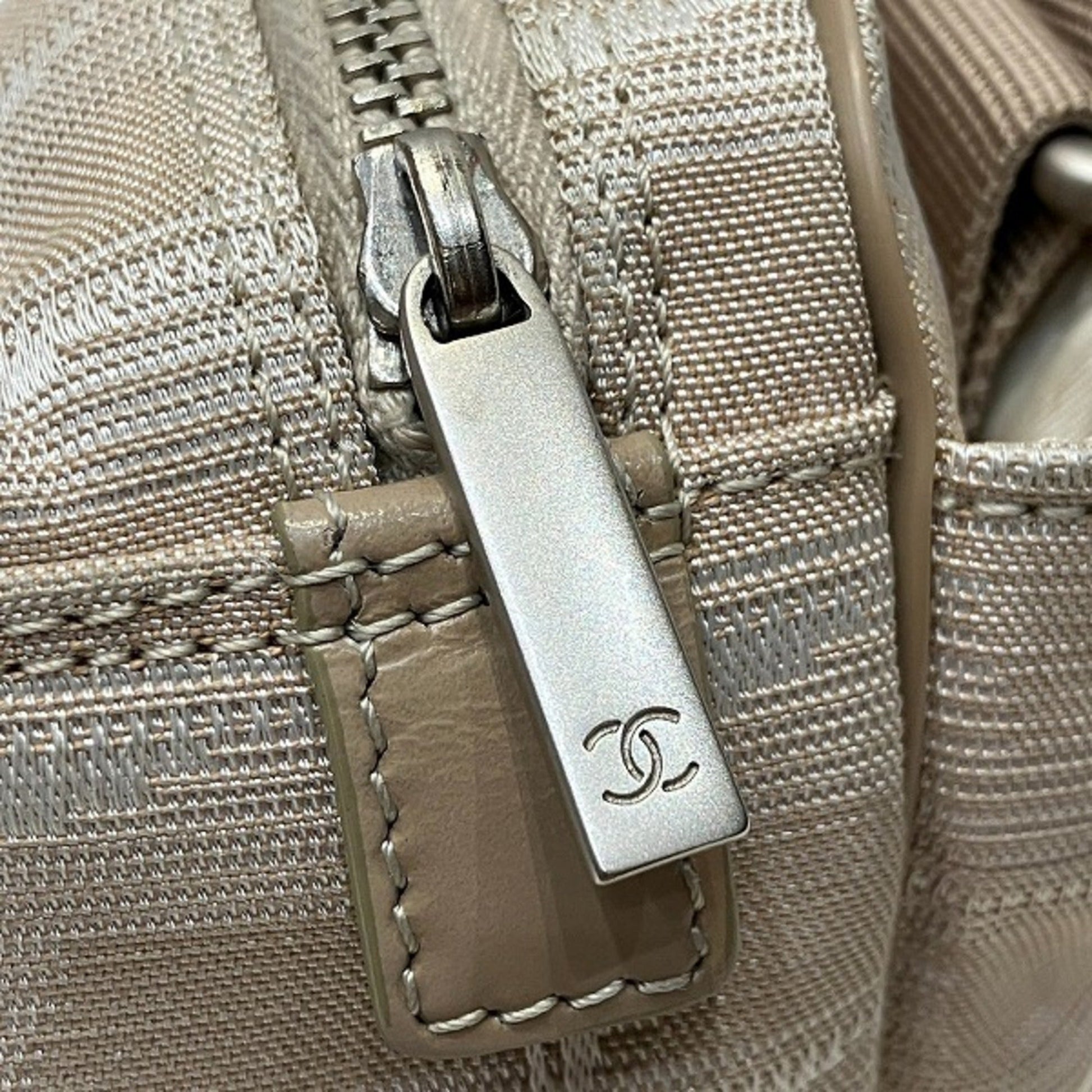 Brand: Chanel, Color: Beige, Material: Nylon canvas, Dimensions: 13cm x 22cm x 10cm / 5.11'' x 8.66'' x 3.93'', Condition: Rank AB. Rank AB Used - Traces of usage, scratches / dirt can be seen but generally in good condition. Before purchasing, please refer to the images for the exact condition of the item. Before purchasing, please refer to the images of the accessories included with the item. Damage Ranking: Slight