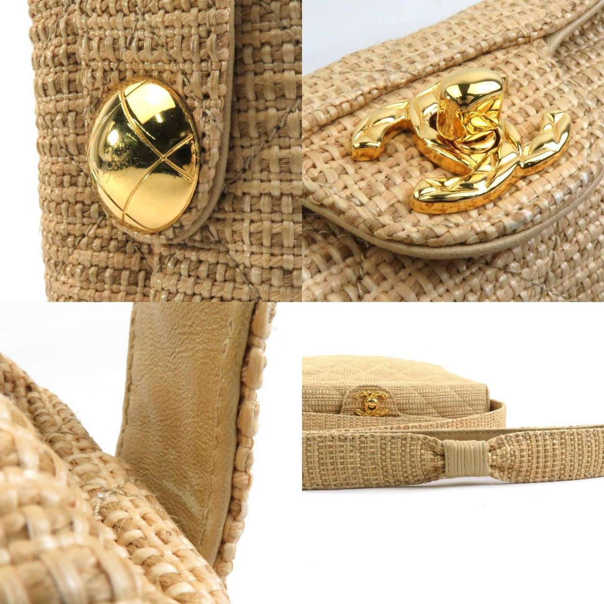 Brand: Chanel, Color: Beige, Material: Raffia, Dimensions: 17cm x 23cm x 8cm / 6.69'' x 9.05'' x 3.14'', Condition: Rank AB. Rank AB Used - Traces of usage, scratches / dirt can be seen but generally in good condition. Before purchasing, please refer to the images for the exact condition of the item. Before purchasing, please refer to the images of the accessories included with the item. Damage Ranking: Slight