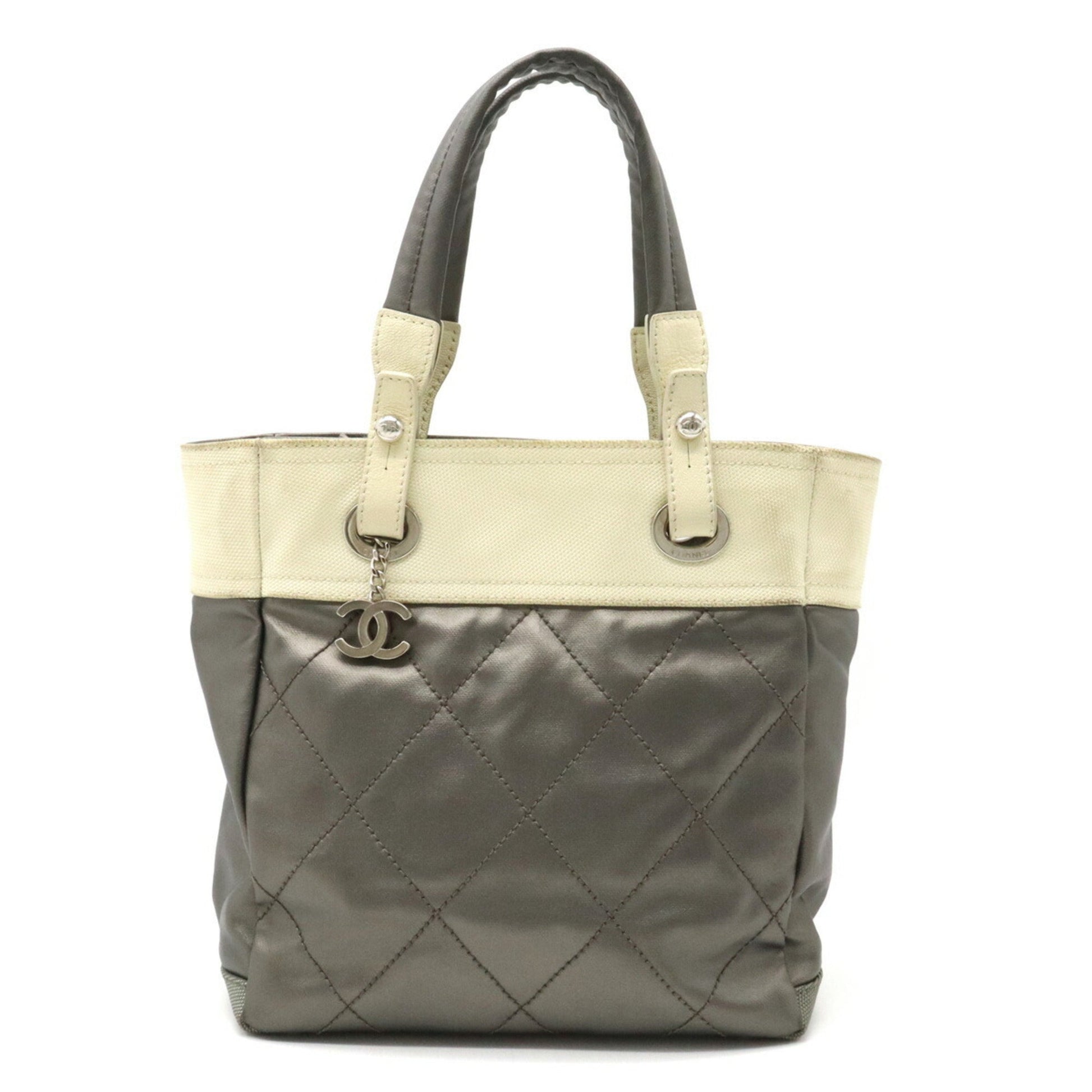 The brand of the item is Chanel, and it belongs to the Paris Biarritz line. It features a versatile design that can be used as both a shoulder bag and a tote bag. The material used is a combination of canvas and leather, giving it durability and style. Available colors are silver and white, offering a chic, elegant look. This item is designed specifically for women, to meet their fashion and functional needs.