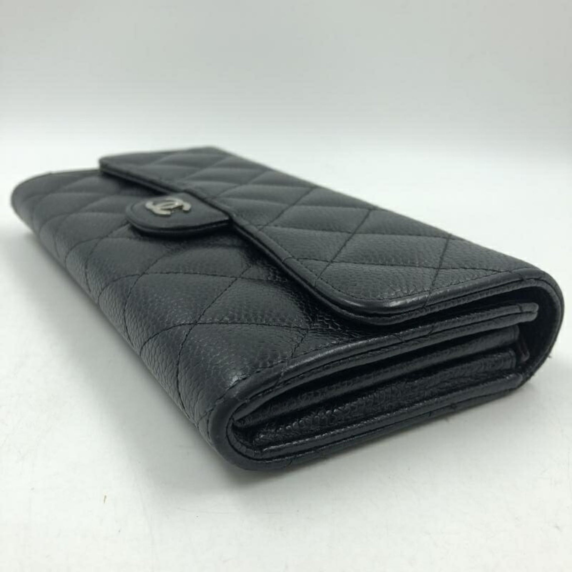 Chanel Black Blue Grained Calfskin Long Bill Wallet (Bi-Fold) ()