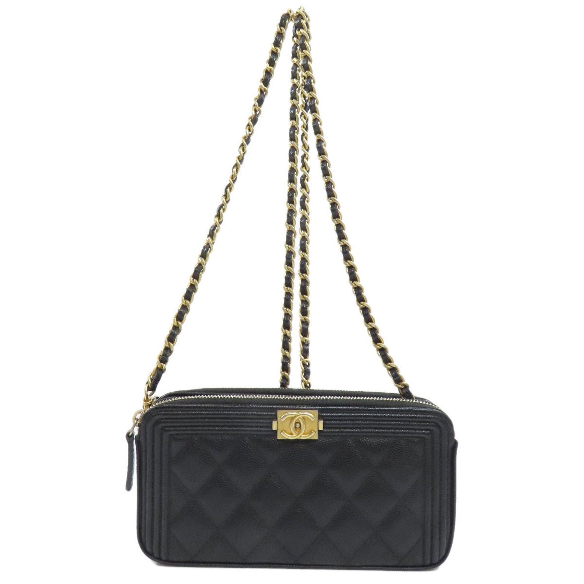 Brand: Chanel, Color: Black, Material: Grained Calfskin, Dimensions: 9.5cm x 18.5cm x 3.5cm / 3.74'' x 7.28'' x 1.37'', Condition: Rank A. Rank A Used - A few traces of usage, some scratches / dirt can be seen but overall in very good condition. Before purchasing, please refer to the images for the exact condition of the item. Before purchasing, please refer to the images of the accessories included with the item. Damage Ranking: Insignificant