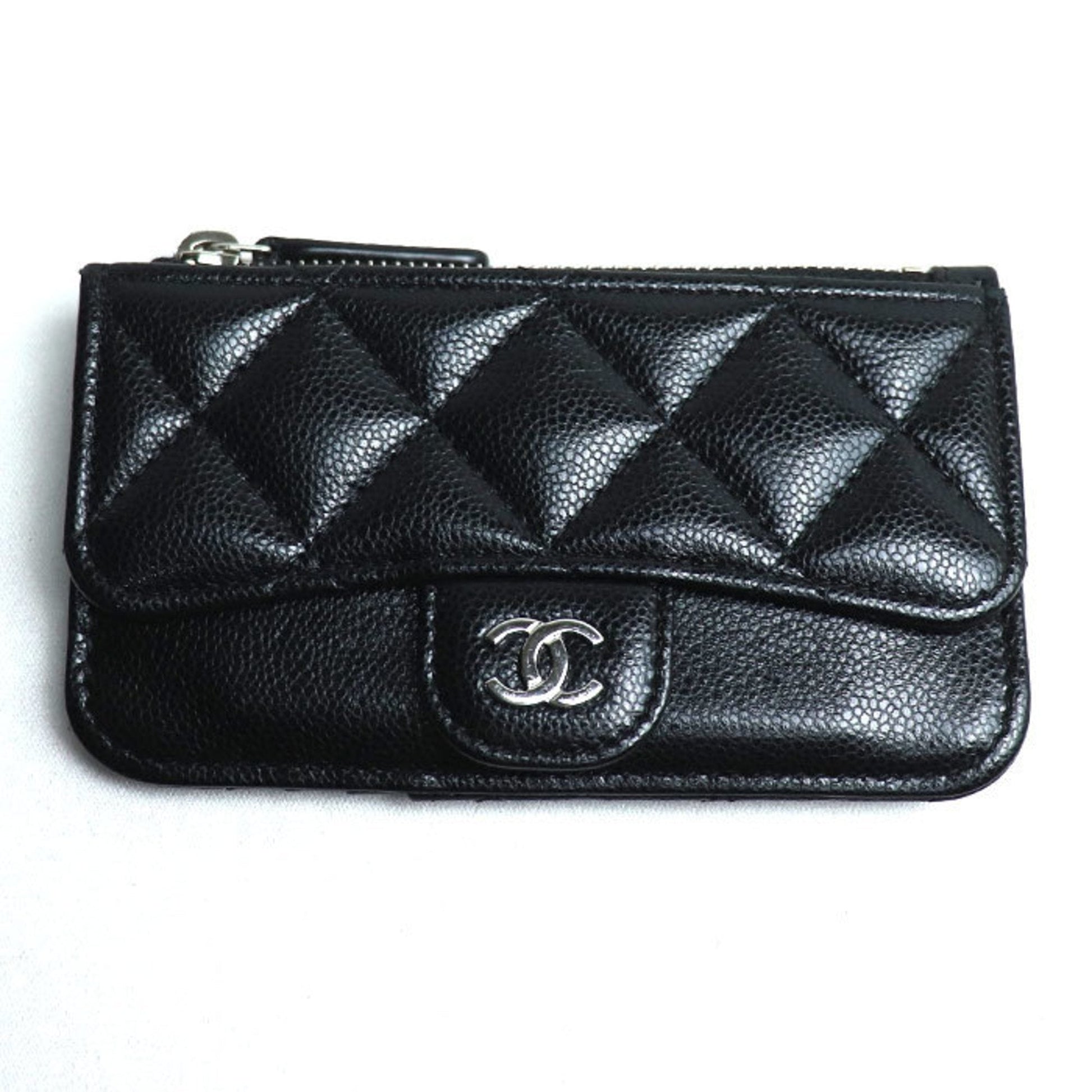 Brand: Chanel, Color: Black, Material: Grained Calfskin, Dimensions: 7.5cm x 13cm x 1cm / 2.95'' x 5.11'' x 0.39'', Country of Origin: France, Condition: Rank A. Rank A Used - A few traces of usage, some scratches / dirt can be seen but overall in very good condition. Before purchasing, please refer to the images for the exact condition of the item. Before purchasing, please refer to the images of the accessories included with the item. Bag Common Damage Scratch: Insignificant