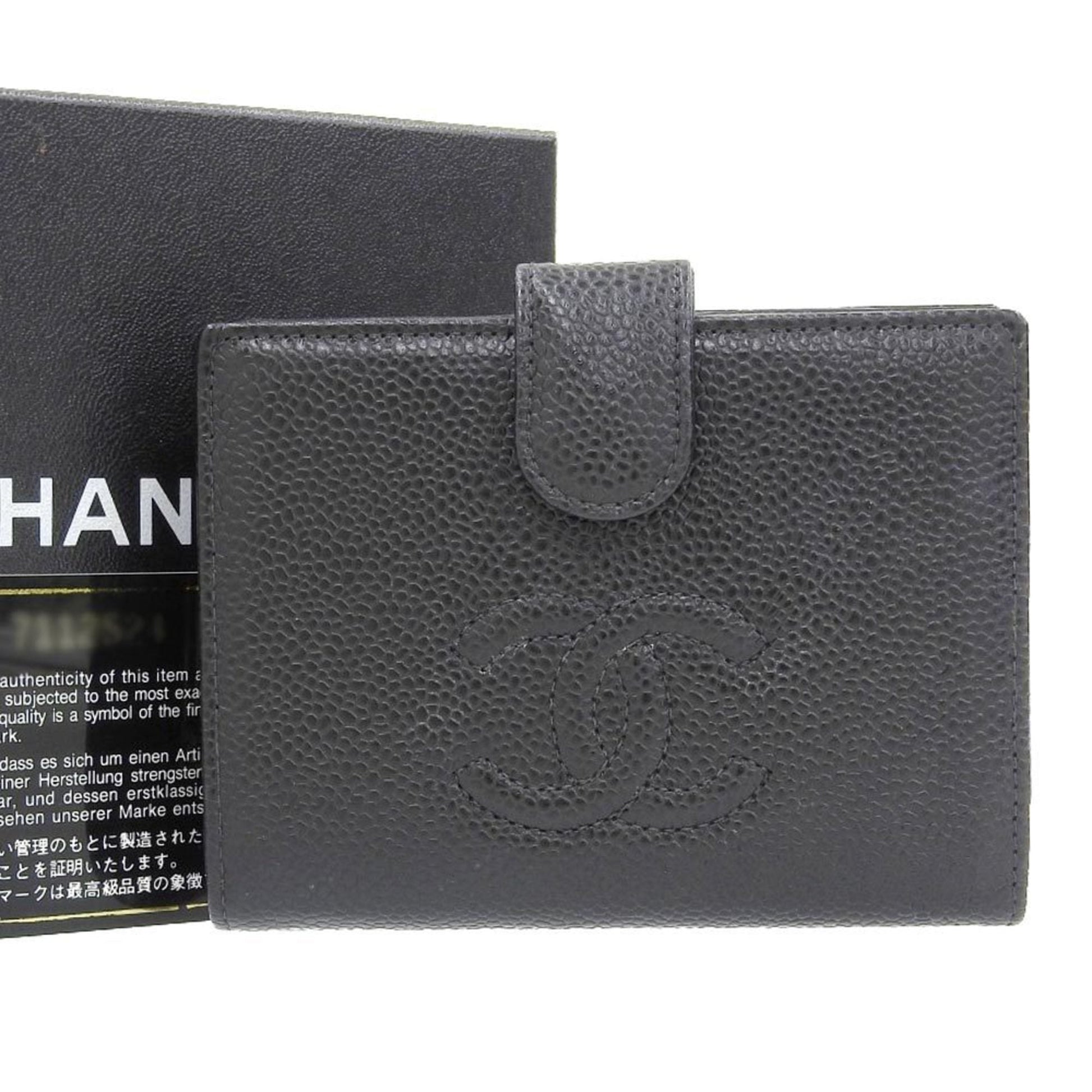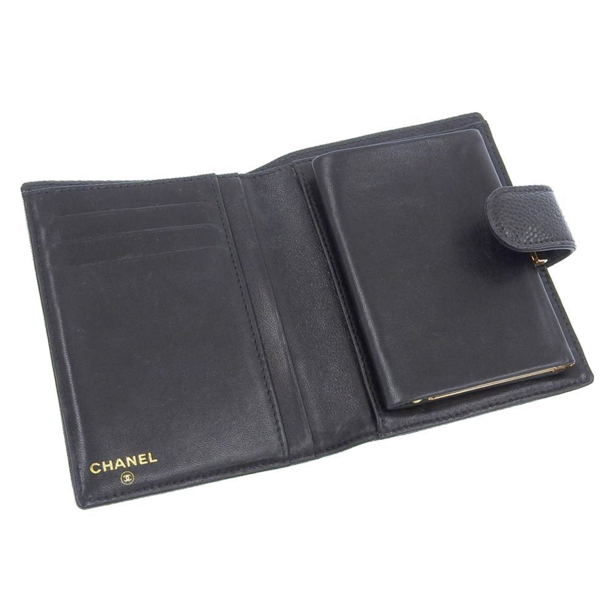 Brand: Chanel, Color: Black, Material: Grained Calfskin, Dimensions: 9.5cm x 12cm x 2cm / 3.74'' x 4.72'' x 0.78'', Condition: Rank AB. Rank AB Used - Traces of usage, scratches / dirt can be seen but generally in good condition. Before purchasing, please refer to the images for the exact condition of the item. Before purchasing, please refer to the images of the accessories included with the item. Damage Ranking: Slight