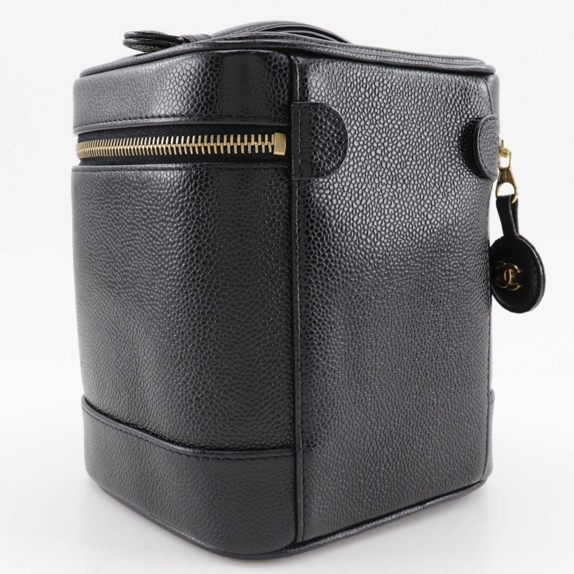 Brand: Chanel, Color: Black, Material: Caviar leather, Dimensions: 17cm x 15cm x 13cm / 6.69'' x 5.9'' x 5.11'', Condition: Rank A. Rank A Used - A few traces of usage, some scratches / dirt can be seen but overall in very good condition. Before purchasing, please refer to the images for the exact condition of the item. Before purchasing, please refer to the images of the accessories included with the item. Bag Common Damage Scratch: Insignificant