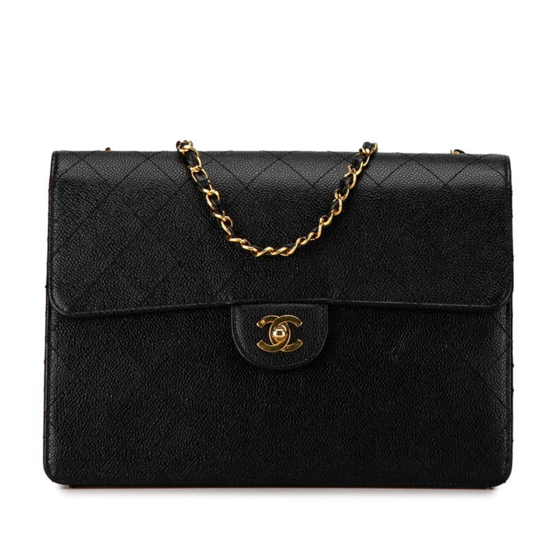 Brand: Chanel, Color: Black, Material: Caviar leather, Dimensions: 21cm x 30cm x 9cm / 8.26'' x 11.81'' x 3.54'', Condition: Rank AB. Rank AB Used - Traces of usage, scratches / dirt can be seen but generally in good condition. Before purchasing, please refer to the images for the exact condition of the item. Before purchasing, please refer to the images of the accessories included with the item. Damage Ranking: Slight