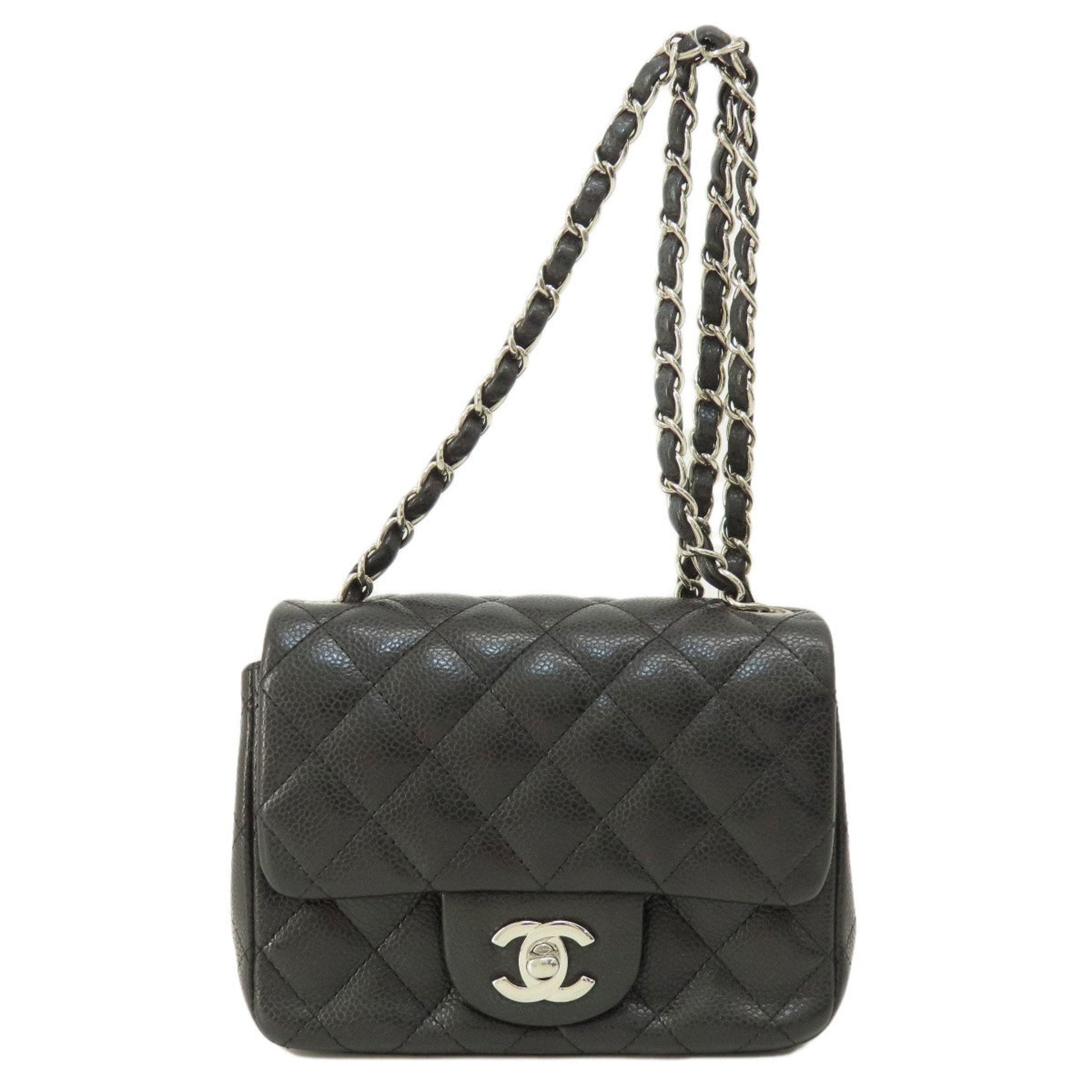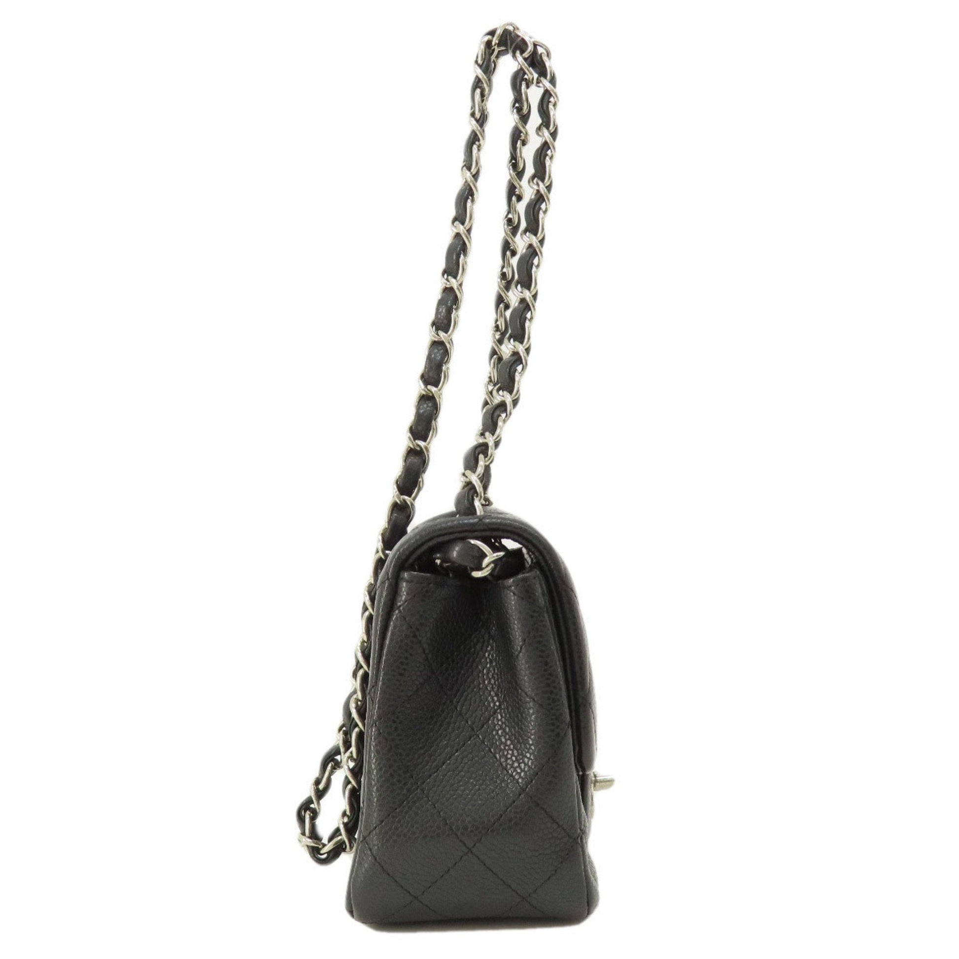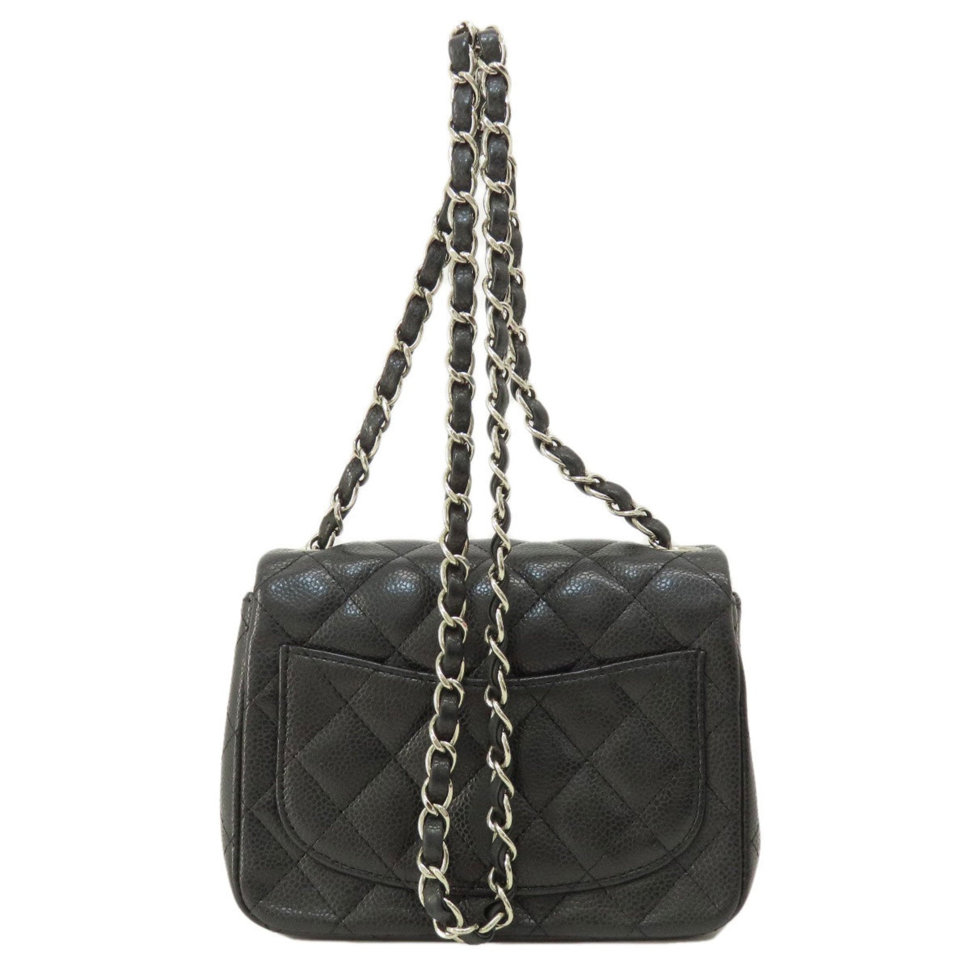Brand: Chanel, Color: Black, Material: Caviar leather, Dimensions: 12.5cm x 17cm x 7cm / 4.92'' x 6.69'' x 2.75'', Condition: Rank AB. Rank AB Used - Traces of usage, scratches / dirt can be seen but generally in good condition. Before purchasing, please refer to the images for the exact condition of the item. Before purchasing, please refer to the images of the accessories included with the item. Damage Ranking: -