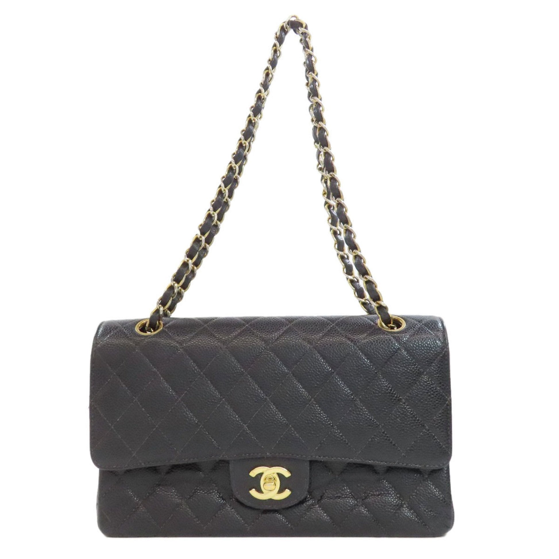 Brand: Chanel, Color: Black, Material: Caviar leather, Dimensions: 14cm x 24cm x 6cm / 5.51'' x 9.44'' x 2.36'', Condition: Rank AB. Rank AB Used - Traces of usage, scratches / dirt can be seen but generally in good condition. Before purchasing, please refer to the images for the exact condition of the item. Before purchasing, please refer to the images of the accessories included with the item. Damage Ranking: Slight
