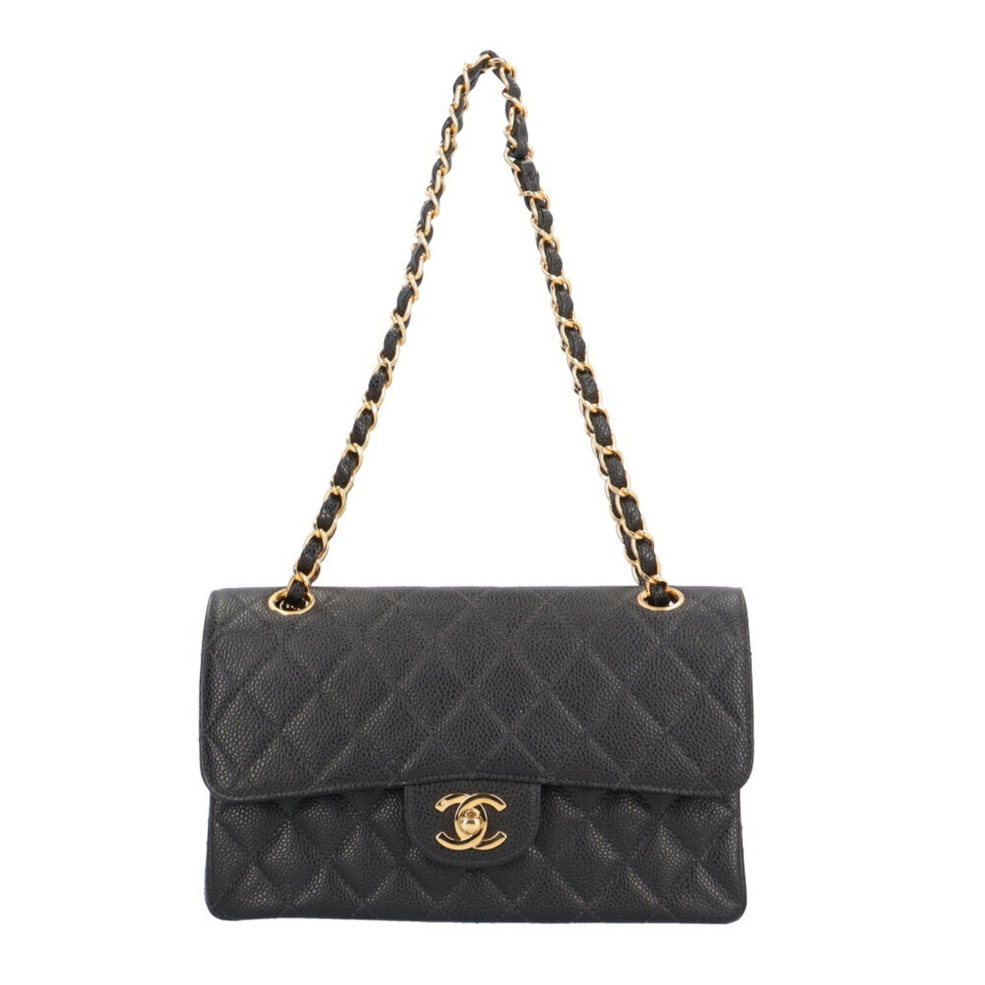 Brand: Chanel, Color: Black, Material: Caviar leather, Dimensions: 13.5cm x 22.5cm x 6cm / 5.31'' x 8.85'' x 2.36'', Condition: Rank A. Rank A Used - A few traces of usage, some scratches / dirt can be seen but overall in very good condition. Before purchasing, please refer to the images for the exact condition of the item. Before purchasing, please refer to the images of the accessories included with the item. Bag Common Damage Scratch: Slight