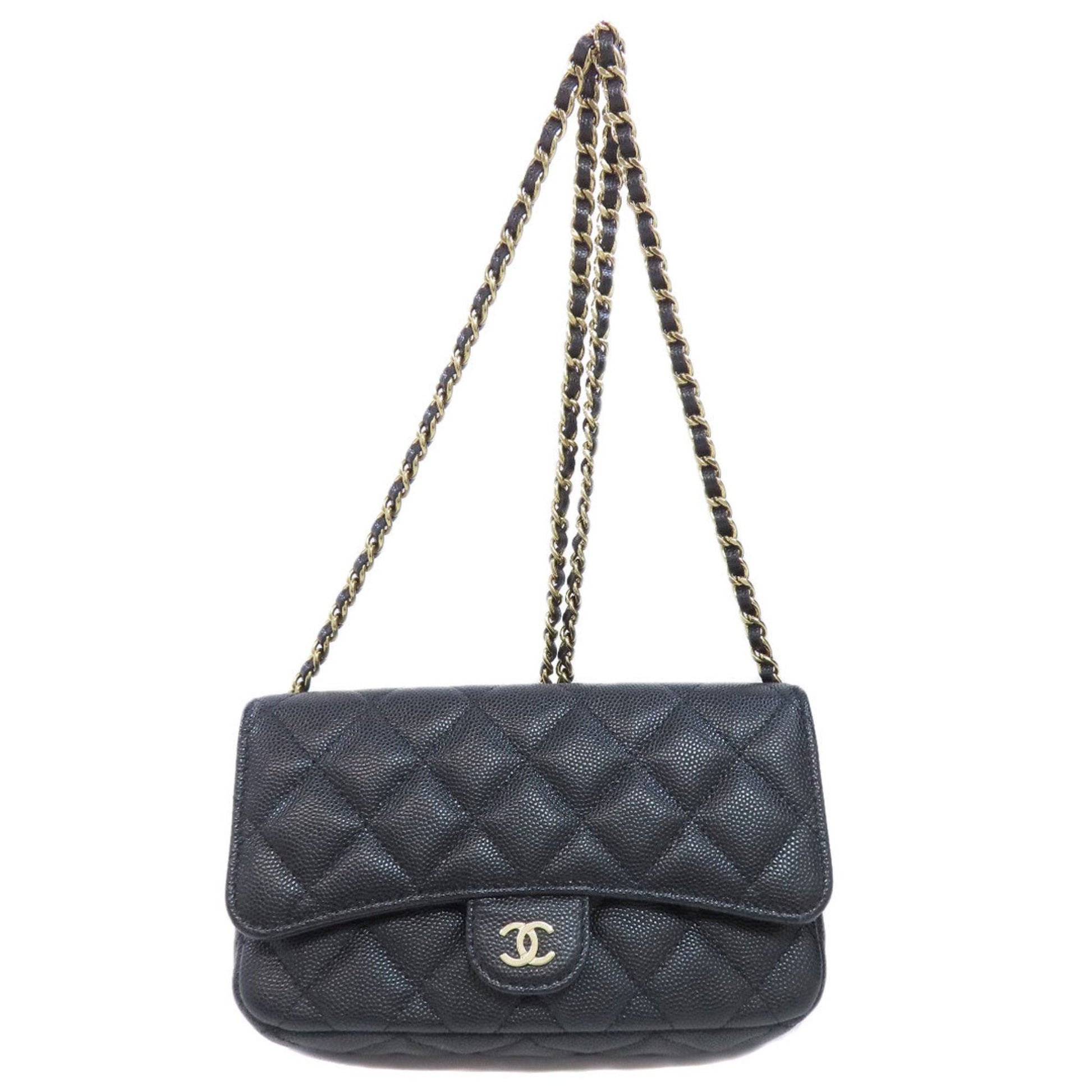 Brand: Chanel, Color: Black, Material: Caviar leather, Dimensions: 10cm x 17.5cm x 3.5cm / 3.93'' x 6.88'' x 1.37'', Condition: Rank A. Rank A Used - A few traces of usage, some scratches / dirt can be seen but overall in very good condition. Before purchasing, please refer to the images for the exact condition of the item. Before purchasing, please refer to the images of the accessories included with the item. Bag Common Damage Scratch: Insignificant