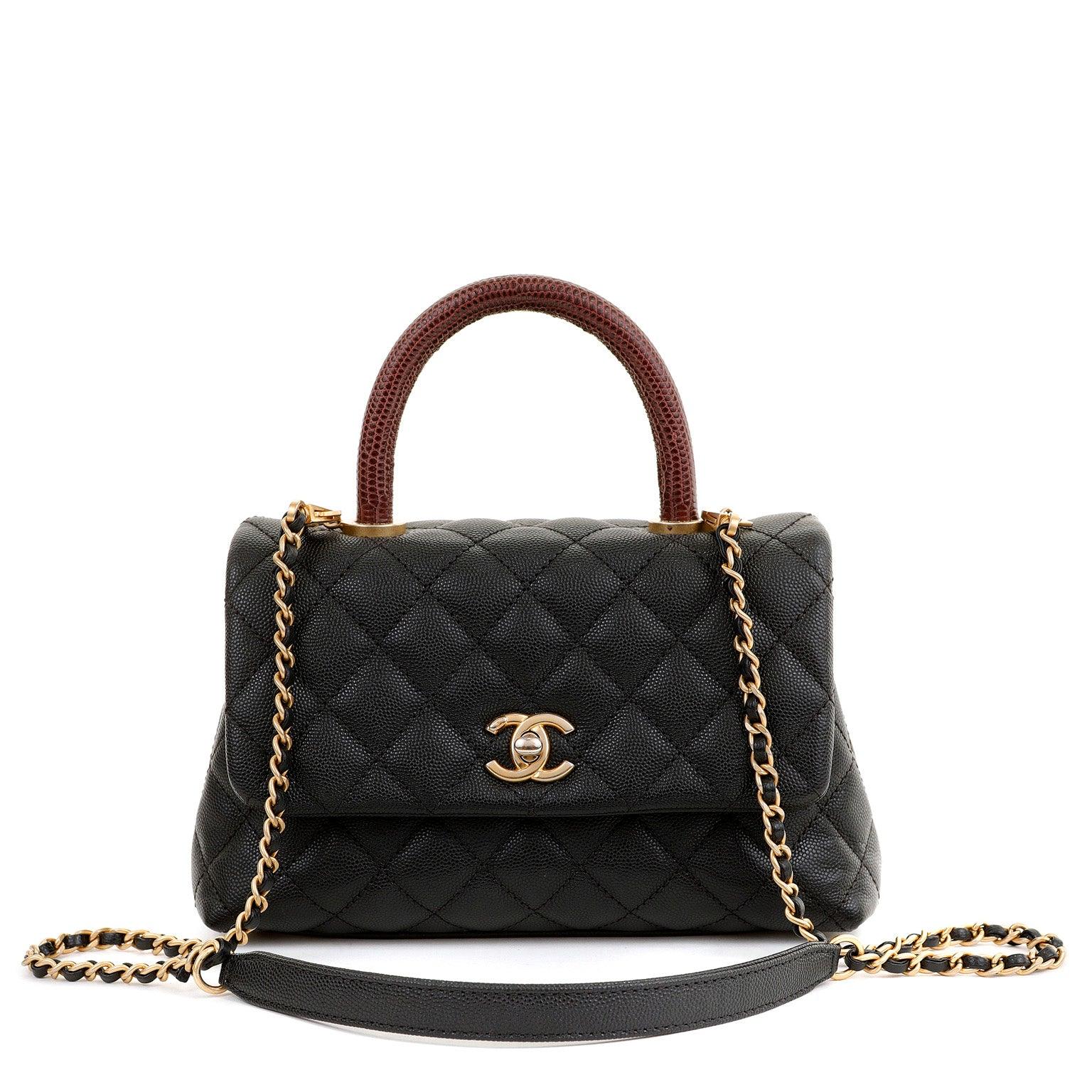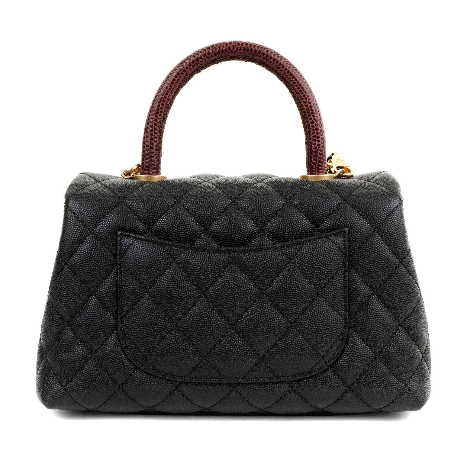 Chanel Black Caviar Lizard Coco Handle Small Flap Bag with Gold Hardware