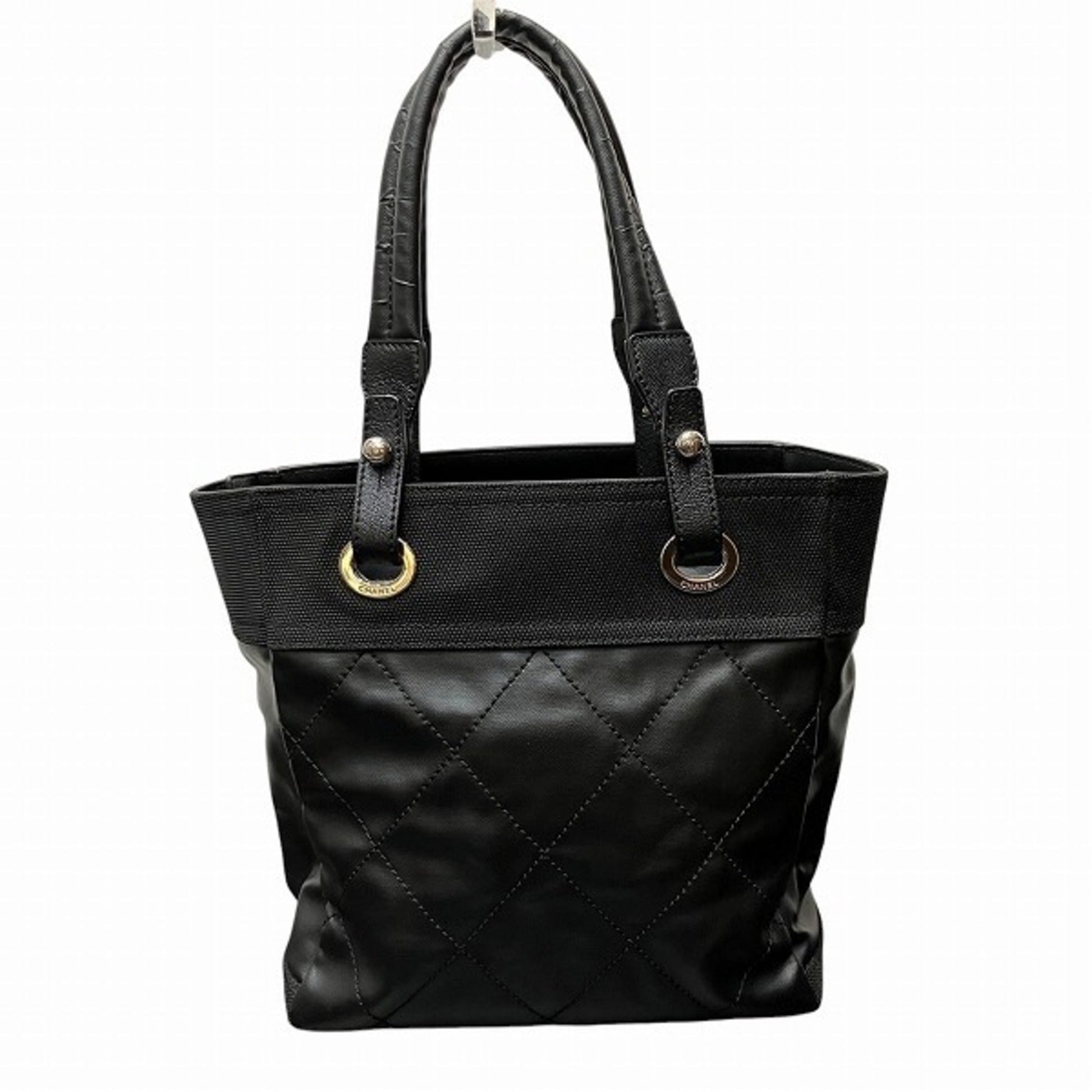 Chanel Black Coated Canvas Leather Shoulder Bag Tote Bag ()