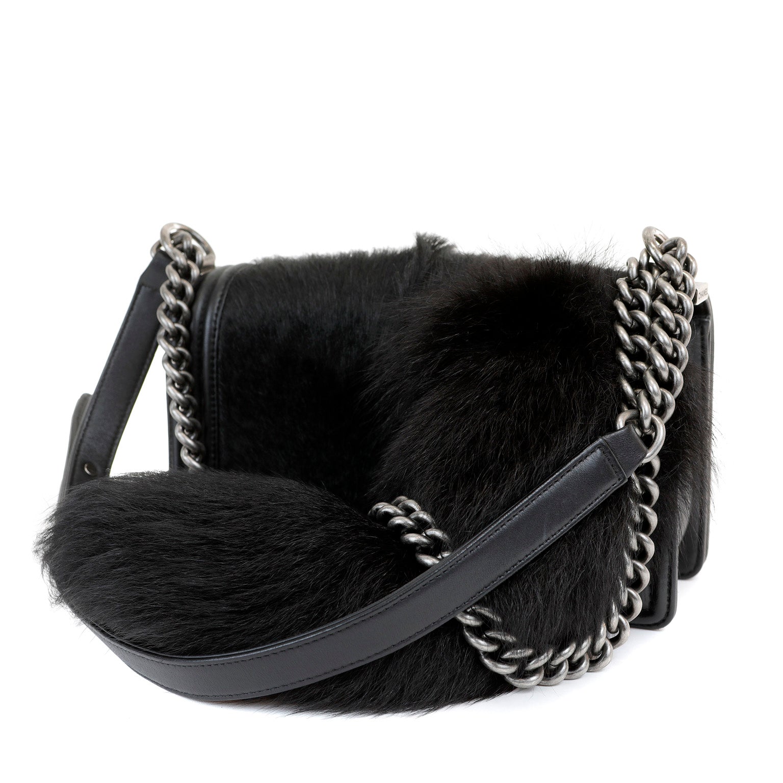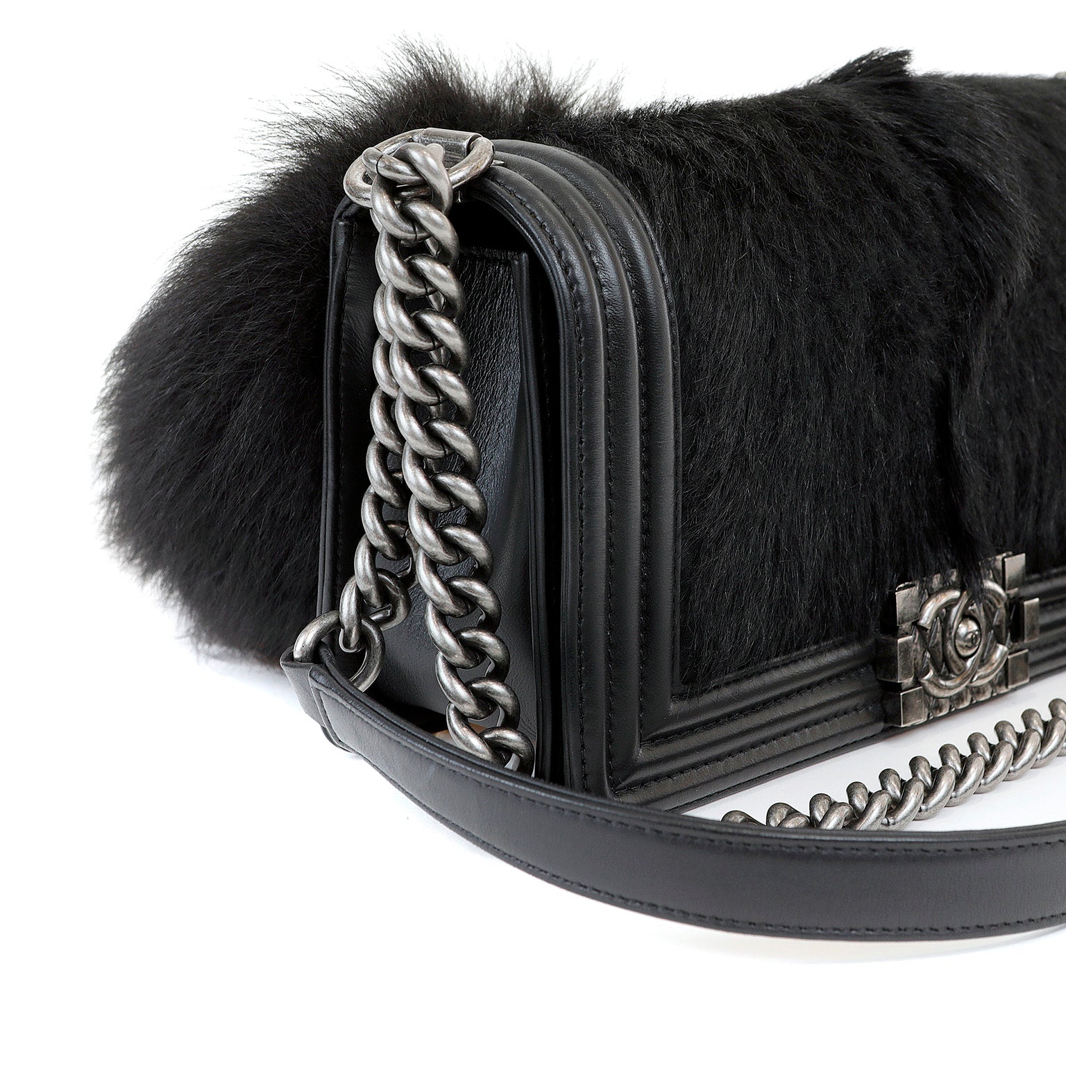 Chanel Black Fox Fur Boy Bag with Tail & Ruthenium Hardware