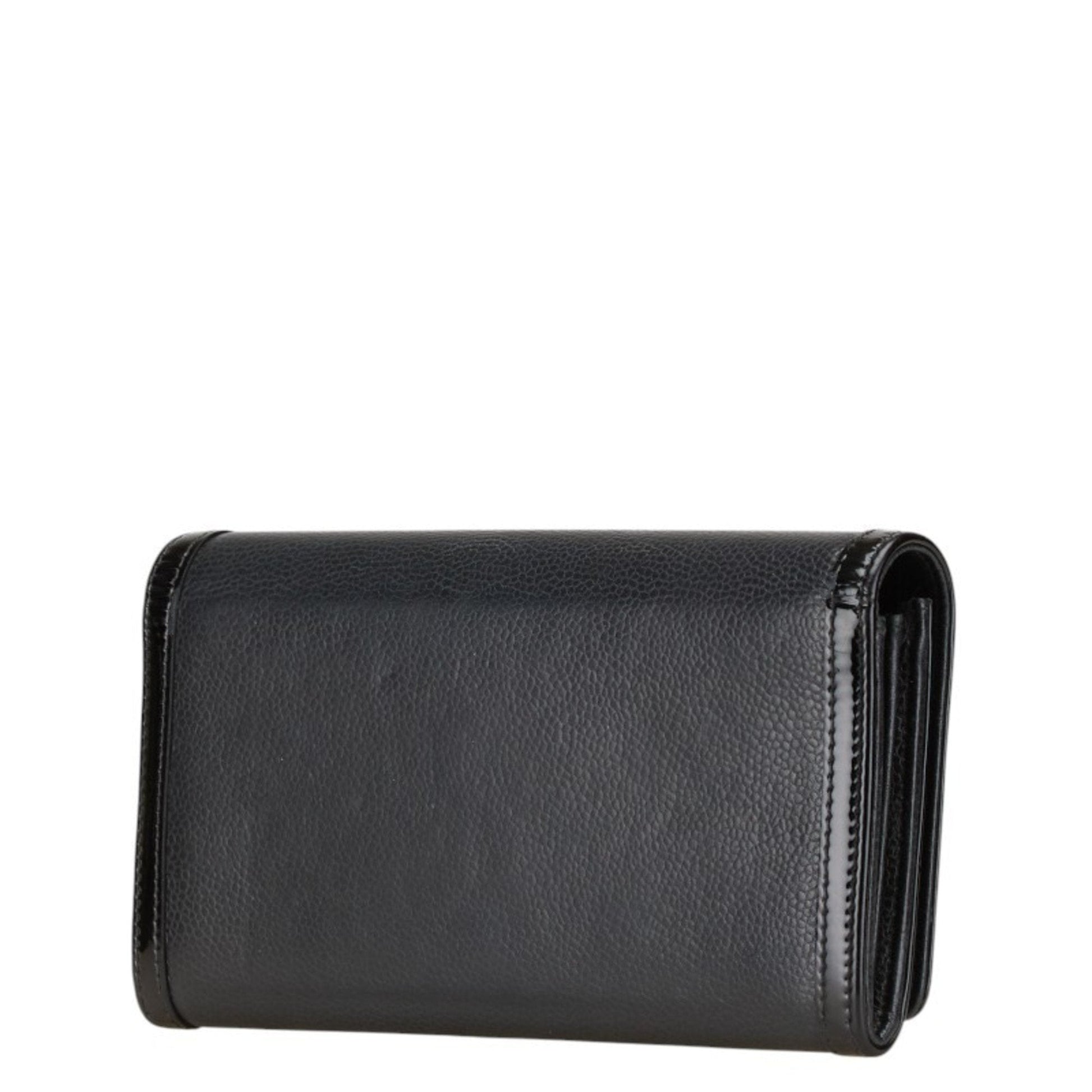 Chanel Black Grained Calfskin Leather Long Wallet (Bi-Fold) ()