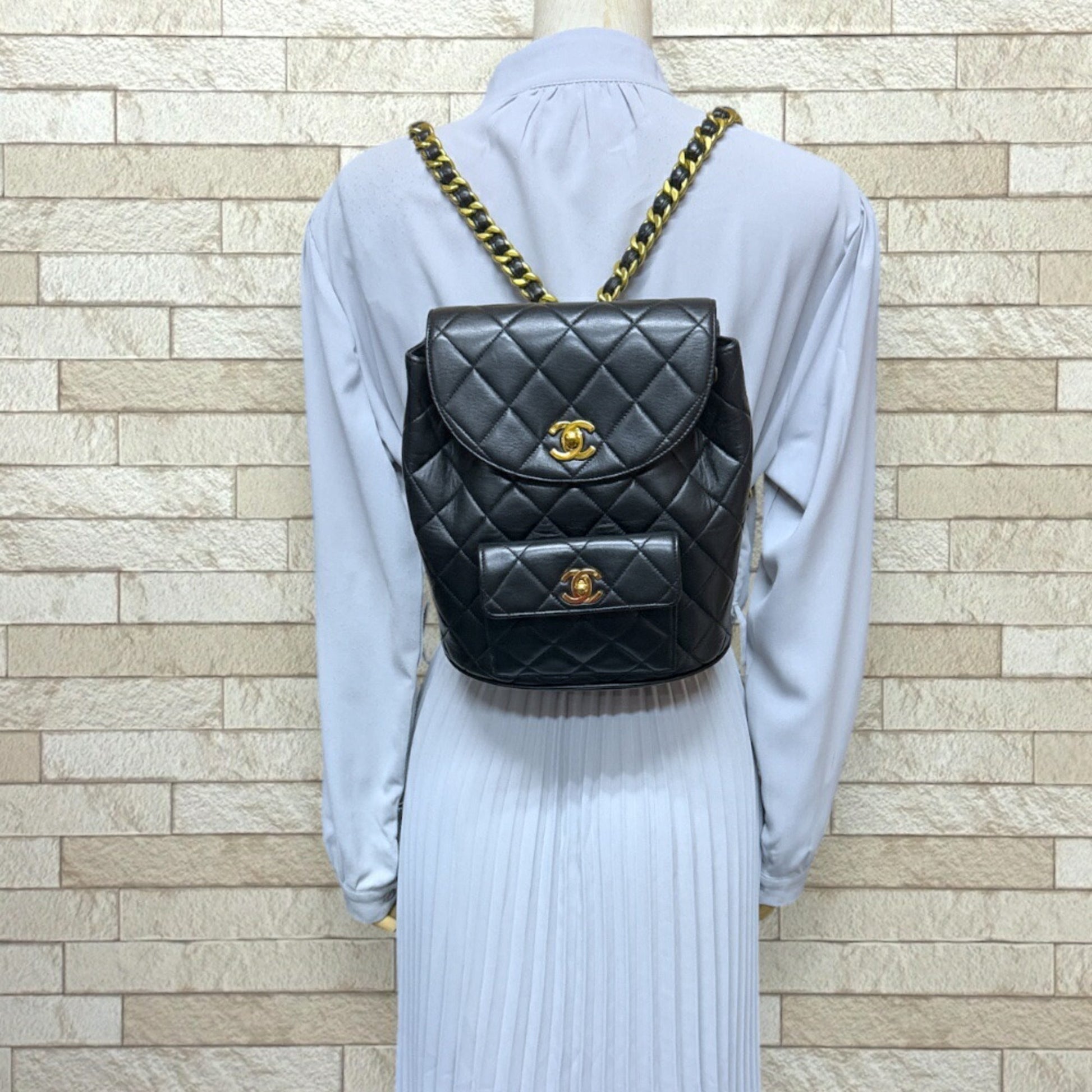 Brand: Chanel, Color: Black, Material: Leather, Dimensions: 22.5cm x 21cm x 9.5cm / 8.85'' x 8.26'' x 3.74'', Condition: Rank AB. Rank AB Used - Traces of usage, scratches / dirt can be seen but generally in good condition. Before purchasing, please refer to the images for the exact condition of the item. Before purchasing, please refer to the images of the accessories included with the item. Damage Ranking: Slight