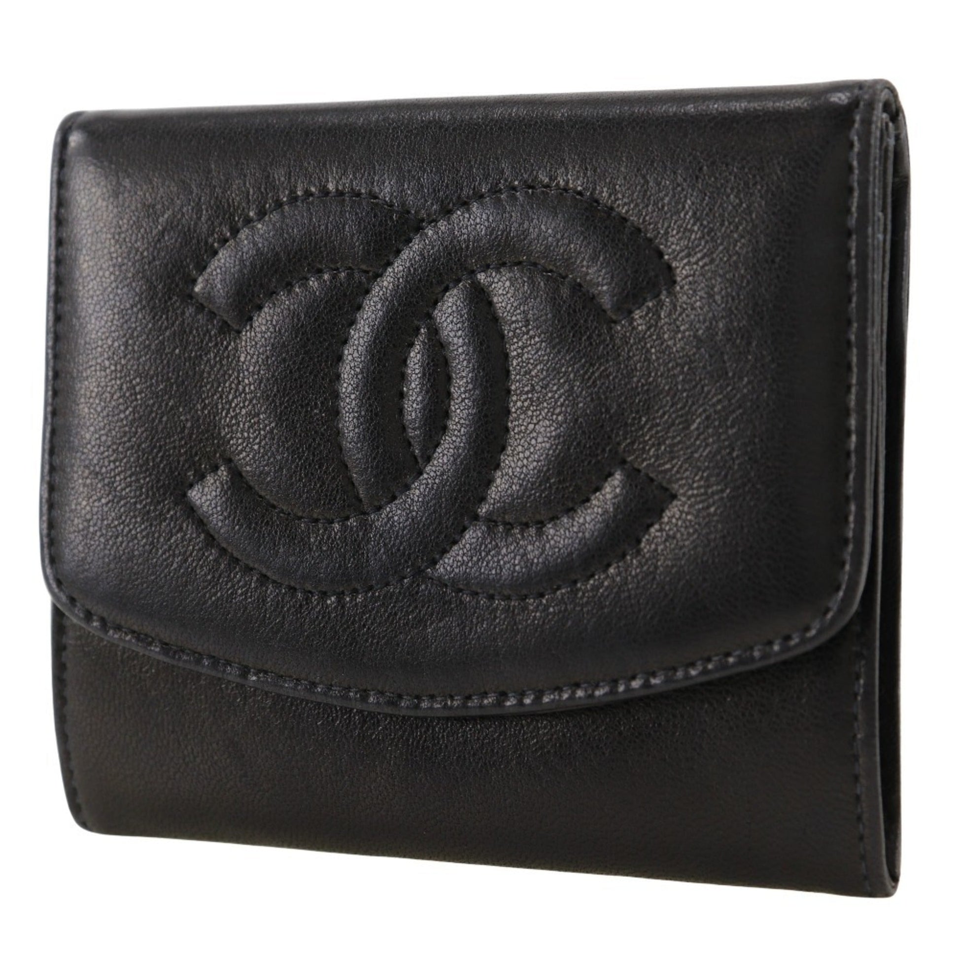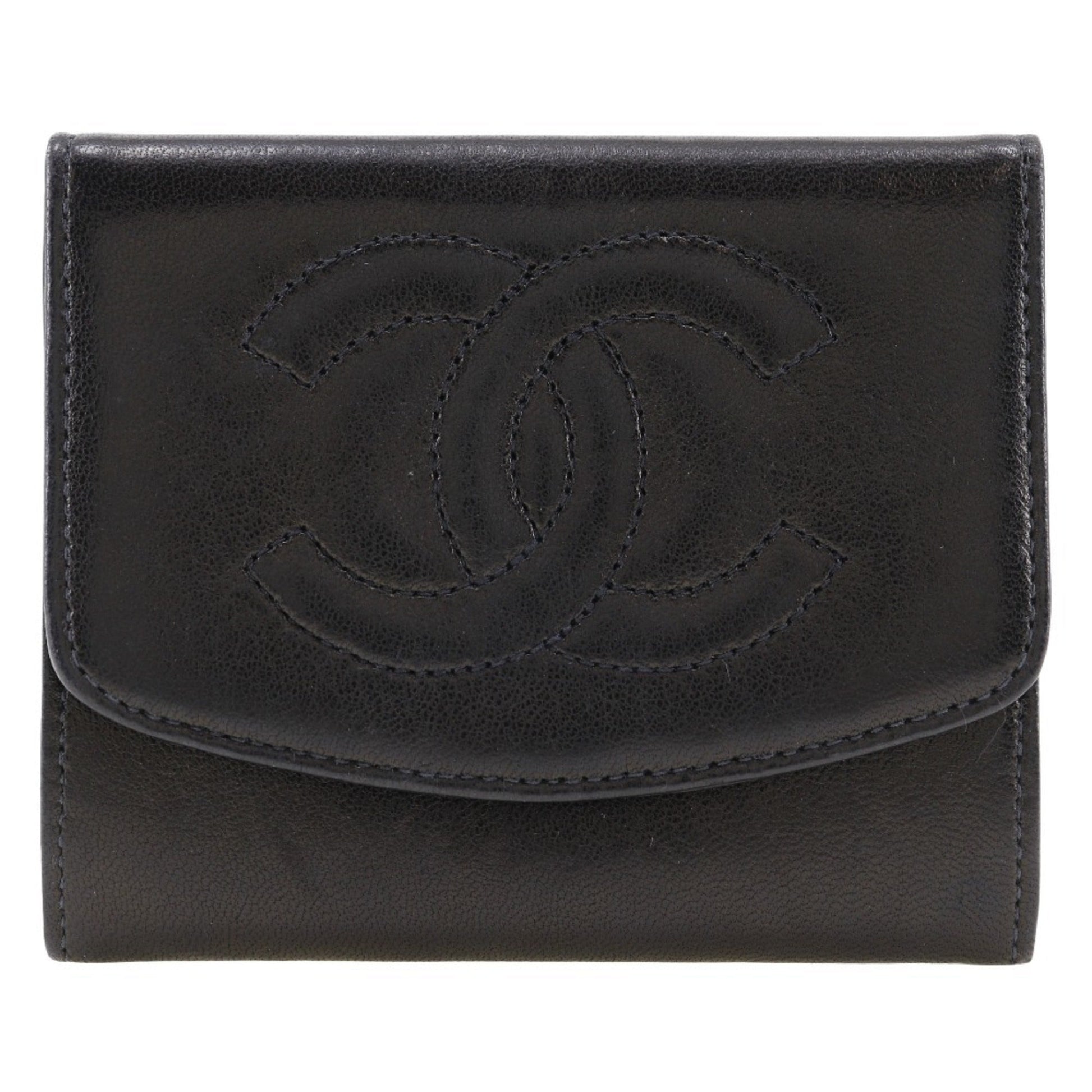 Brand: Chanel, Color: Black, Material: Leather, Dimensions: 8cm x 9.5cm x 1cm / 3.14'' x 3.74'' x 0.39'', Condition: Rank AB. Rank AB Used - Traces of usage, scratches / dirt can be seen but generally in good condition. Before purchasing, please refer to the images for the exact condition of the item. Before purchasing, please refer to the images of the accessories included with the item. Bag Common Damage Scratch: Slight