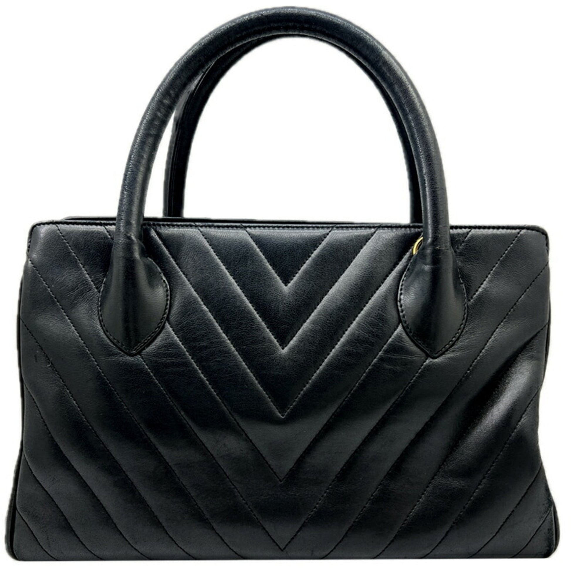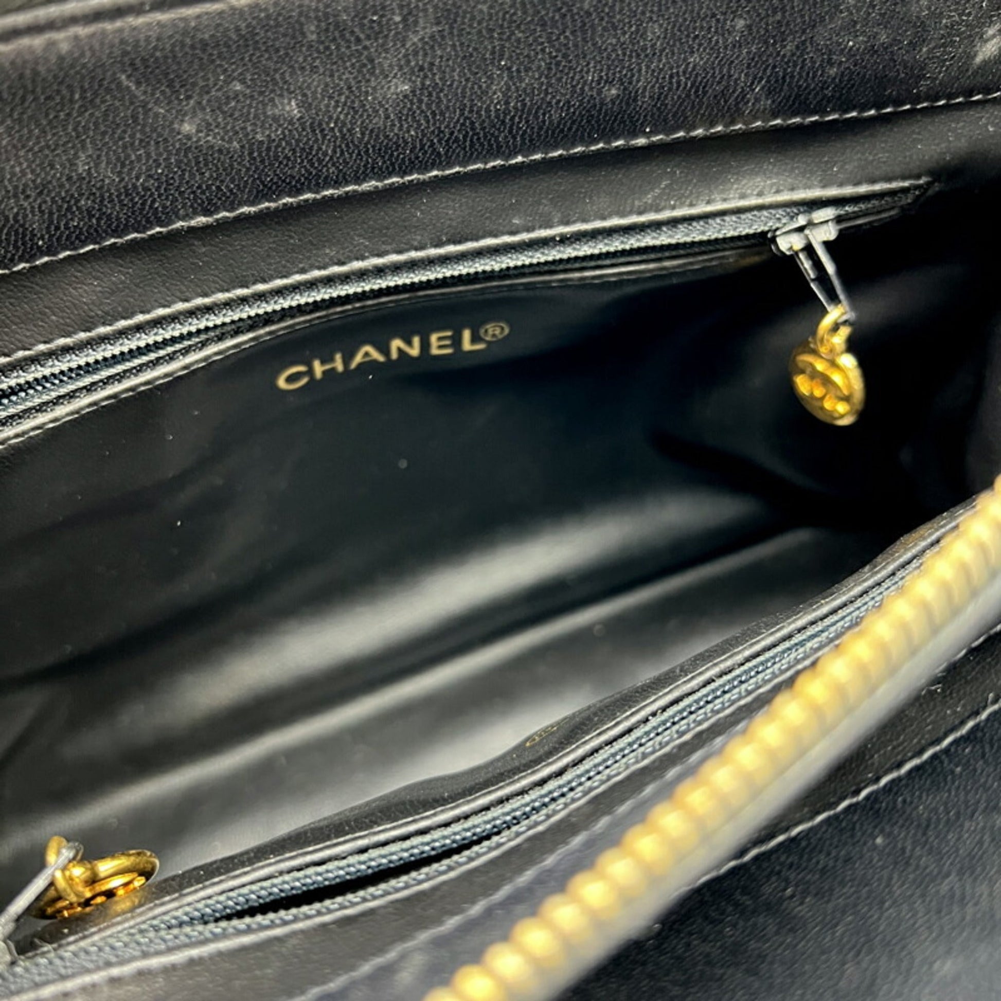 Brand: Chanel, Color: Black, Material: Leather, Dimensions: 18cm x 29cm x 12cm / 7.08'' x 11.41'' x 4.72'', Condition: Rank B. Rank B Used - Traces of usage, damages / dirt can be seen but it is still in acceptable condition for continued usage. Before purchasing, please refer to the images for the exact condition of the item. Before purchasing, please refer to the images of the accessories included with the item. Bag Common Damage Scratch: Moderate