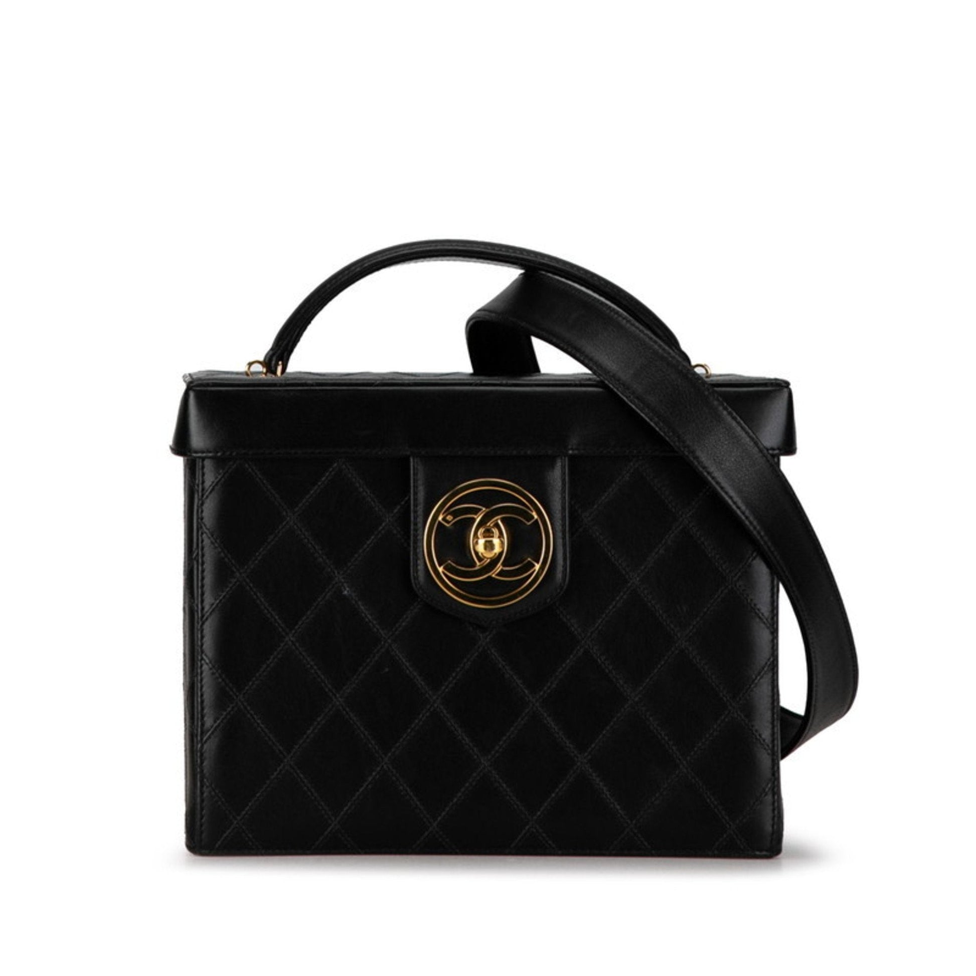 Chanel Black Leather Handbag Shoulder Bag Vanity Bag ()