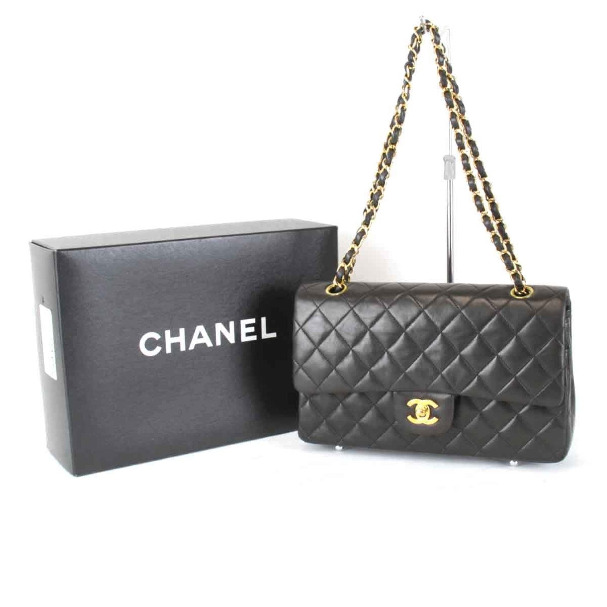Brand: Chanel, Color: Black, Material: Leather, Dimensions: 16cm x 26cm x 7cm / 6.29'' x 10.23'' x 2.75'', Condition: Rank AB. Rank AB Used - Traces of usage, scratches / dirt can be seen but generally in good condition. Before purchasing, please refer to the images for the exact condition of the item. Before purchasing, please refer to the images of the accessories included with the item. Bag Common Damage Scratch: Slight