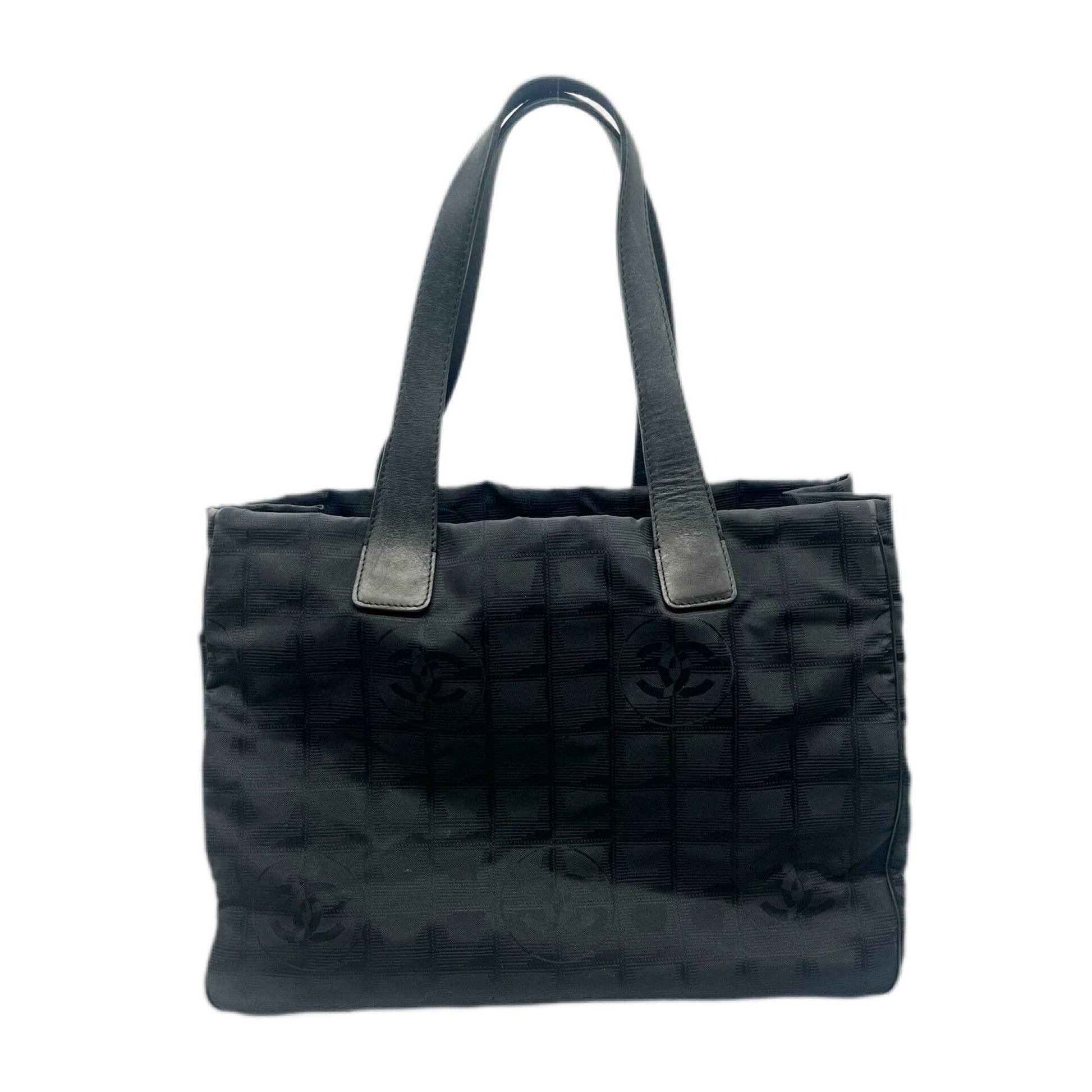Brand: Chanel, Color: Black, Material: Nylon, Dimensions: 26cm x 34cm x 15cm / 10.23'' x 13.38'' x 5.9'', Condition: Rank B. Rank B Used - Traces of usage, damages / dirt can be seen but it is still in acceptable condition for continued usage. Before purchasing, please refer to the images for the exact condition of the item. Before purchasing, please refer to the images of the accessories included with the item. Damage Ranking: Moderate