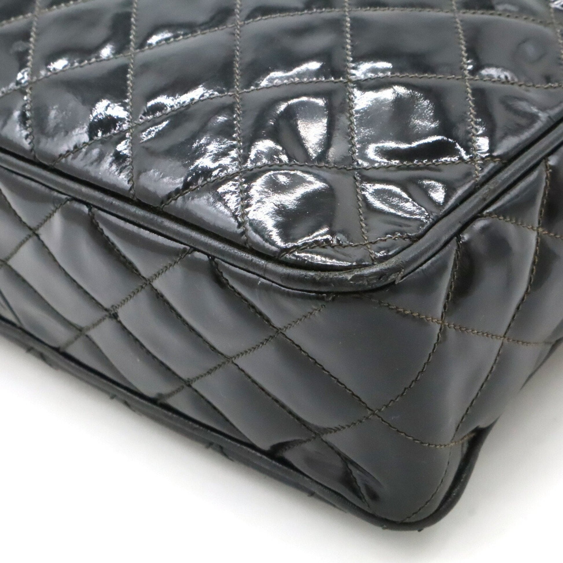 Brand: Chanel, Color: Black, Material: Patent leather, Dimensions: 20.5cm x 27cm x 7cm / 8.07'' x 10.62'' x 2.75'', Condition: Rank B. Rank B Used - Traces of usage, damages / dirt can be seen but it is still in acceptable condition for continued usage. Before purchasing, please refer to the images for the exact condition of the item. Before purchasing, please refer to the images of the accessories included with the item. Damage Ranking: -