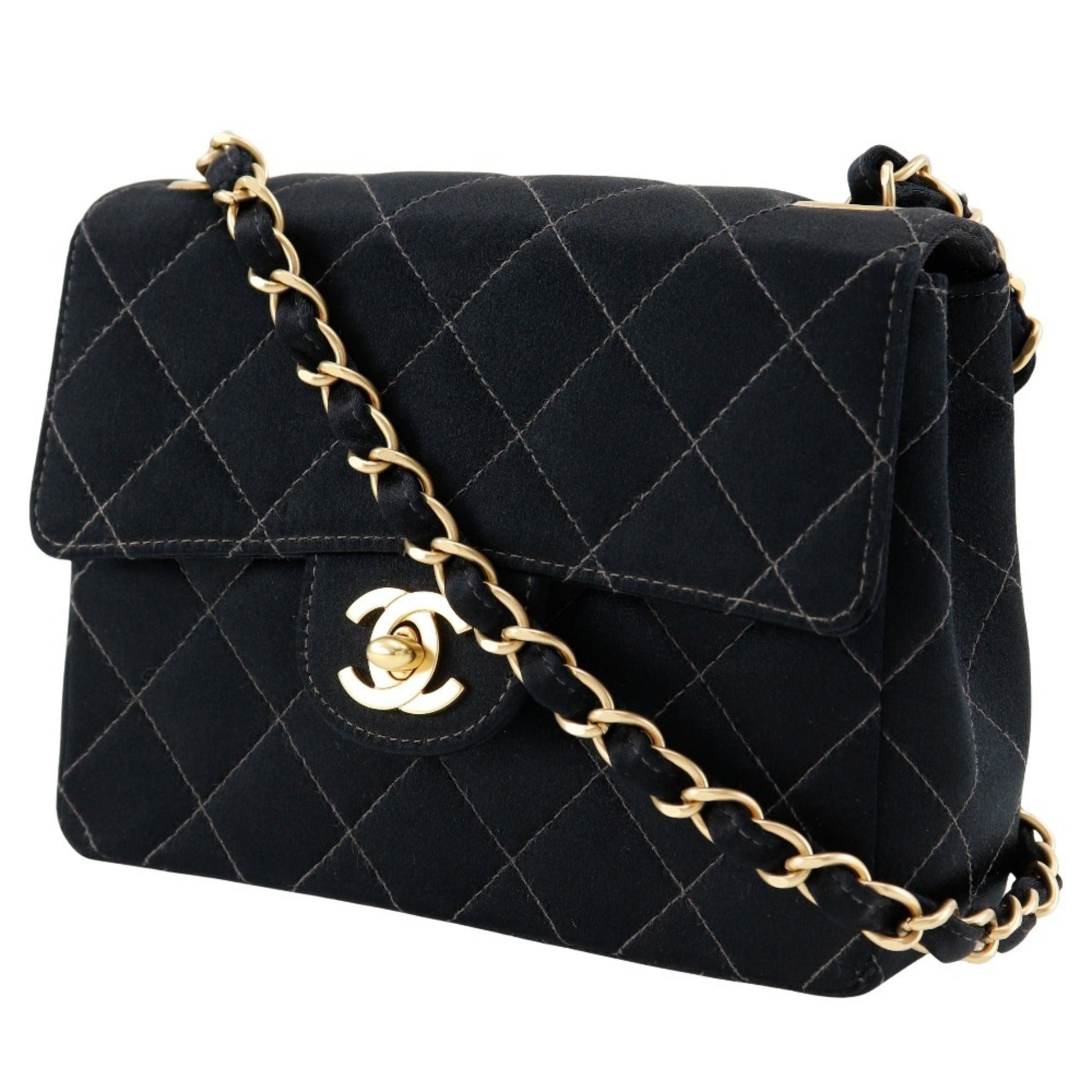 Brand: Chanel, Color: Black, Material: Satin, Dimensions: 13cm x 17cm x 6cm / 5.11'' x 6.69'' x 2.36'', Condition: Rank A. Rank A Used - A few traces of usage, some scratches / dirt can be seen but overall in very good condition. Before purchasing, please refer to the images for the exact condition of the item. Before purchasing, please refer to the images of the accessories included with the item. Bag Common Damage Scratch: Slight
