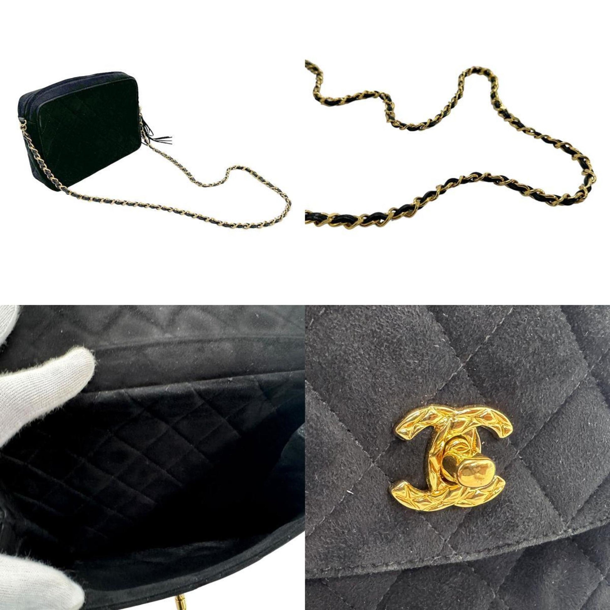 Brand: Chanel, Color: Black, Material: Suede, Metal, Dimensions: 16.5cm x 23cm x 6cm / 6.49'' x 9.05'' x 2.36'', Condition: Rank AB. Rank AB Used - Traces of usage, scratches / dirt can be seen but generally in good condition. Before purchasing, please refer to the images for the exact condition of the item. Before purchasing, please refer to the images of the accessories included with the item. Damage Ranking: Slight